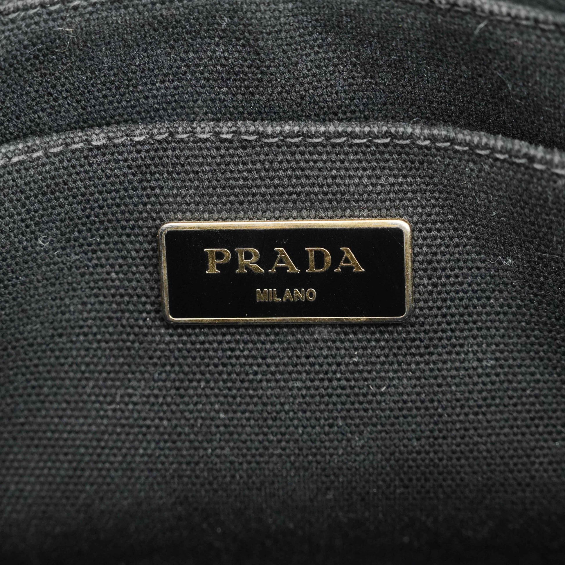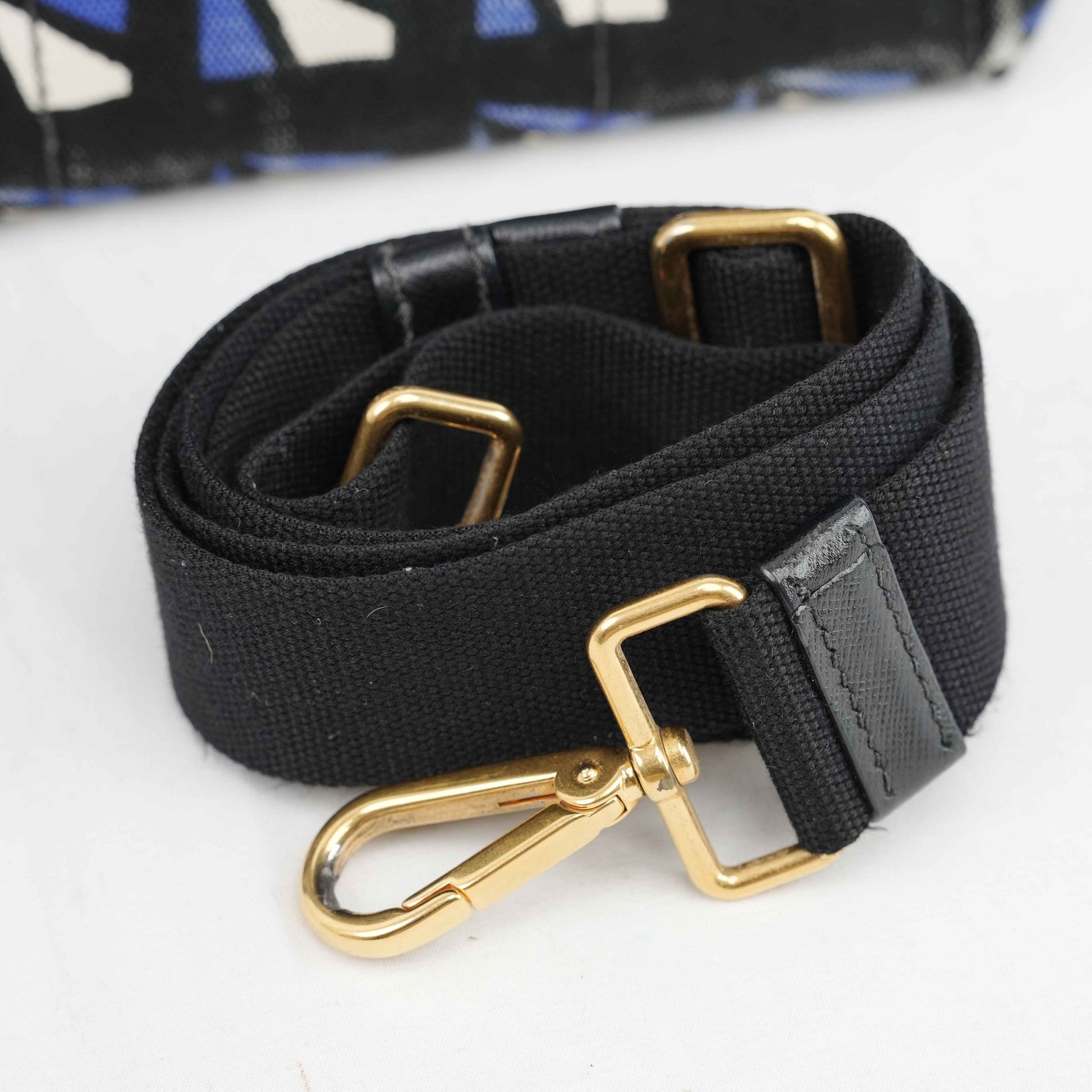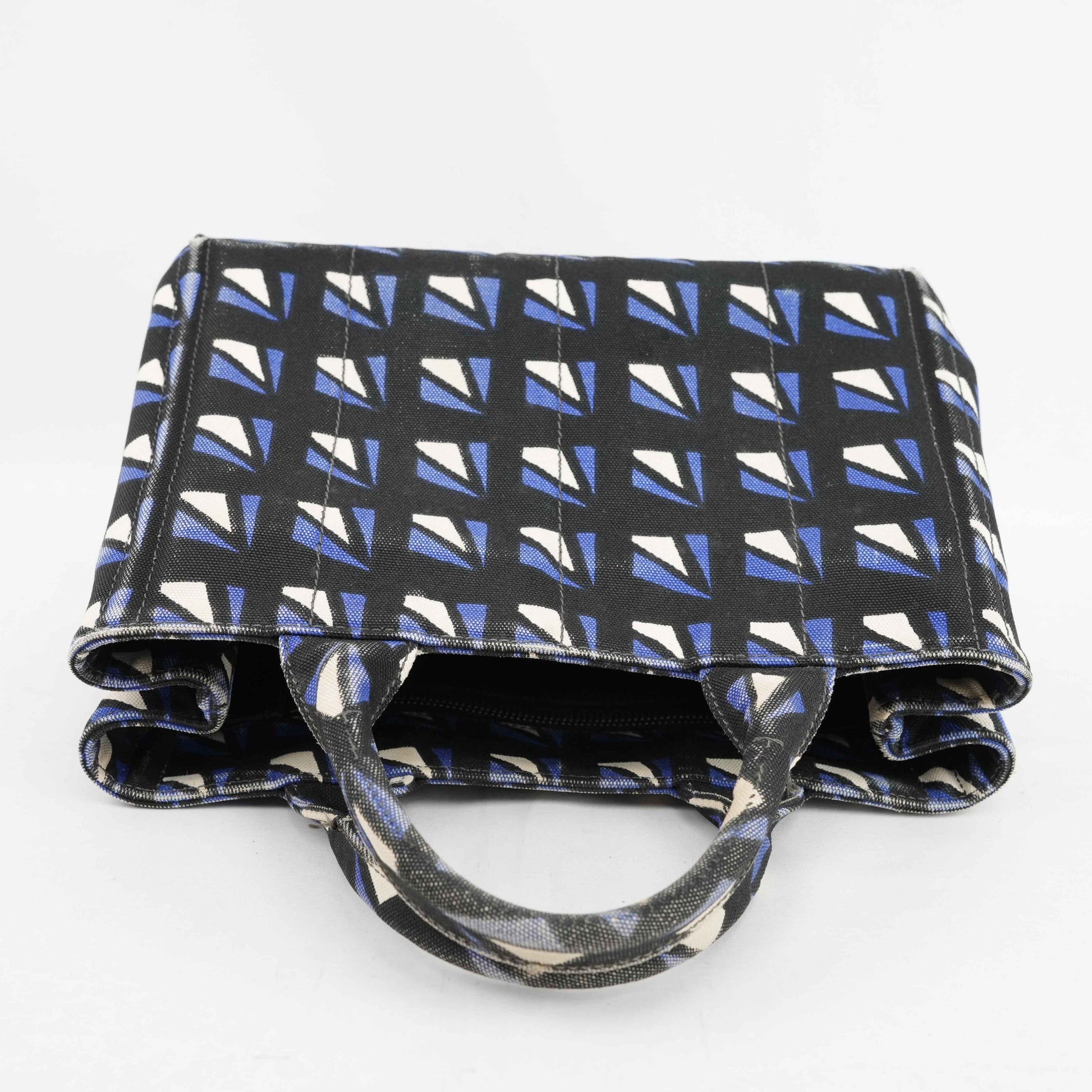 Authentic Prada Canapa Geometric Print Canvas Bag – Black/Blue