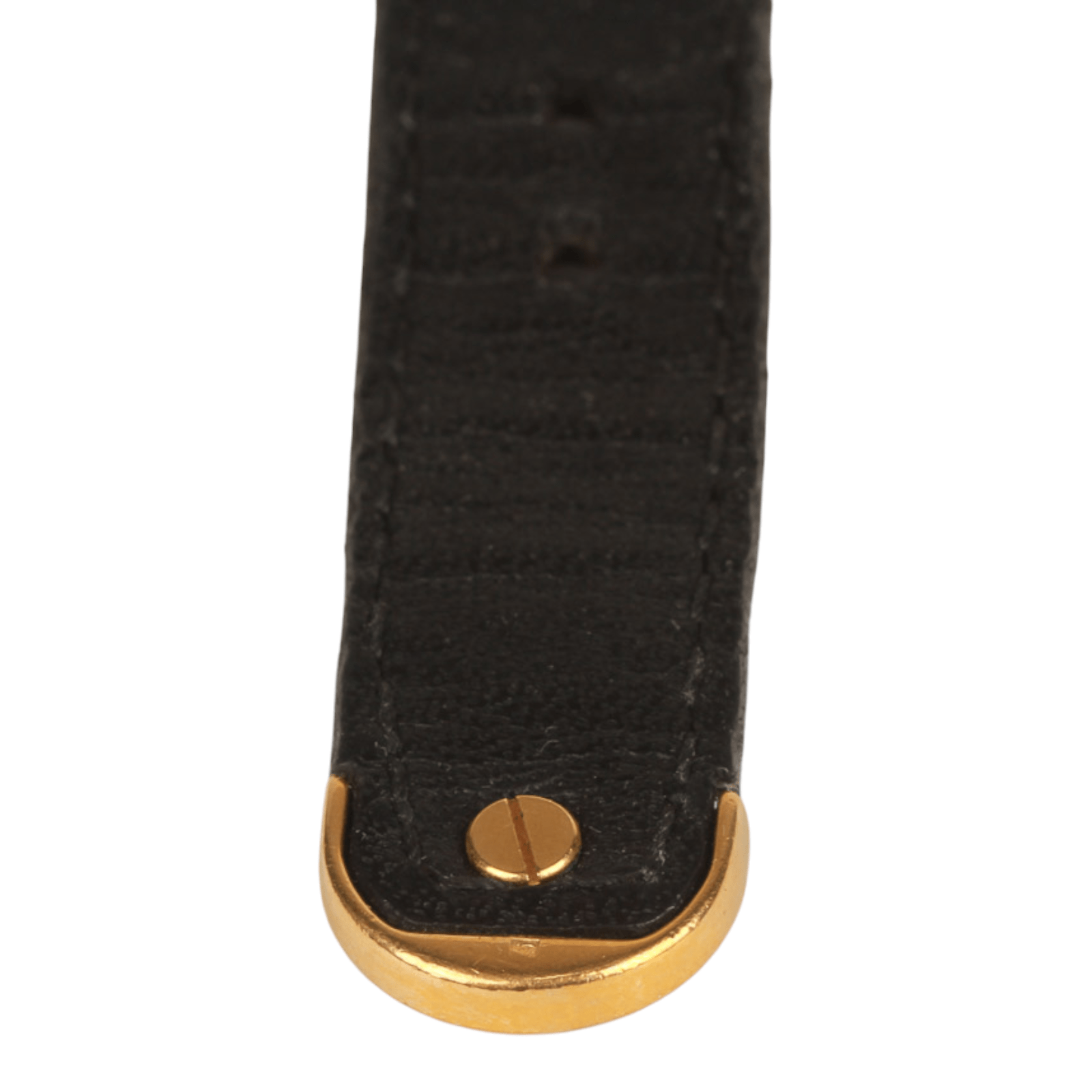 - Strap: Original black crocodile-embossed leather strap signed “Gianni Versace”