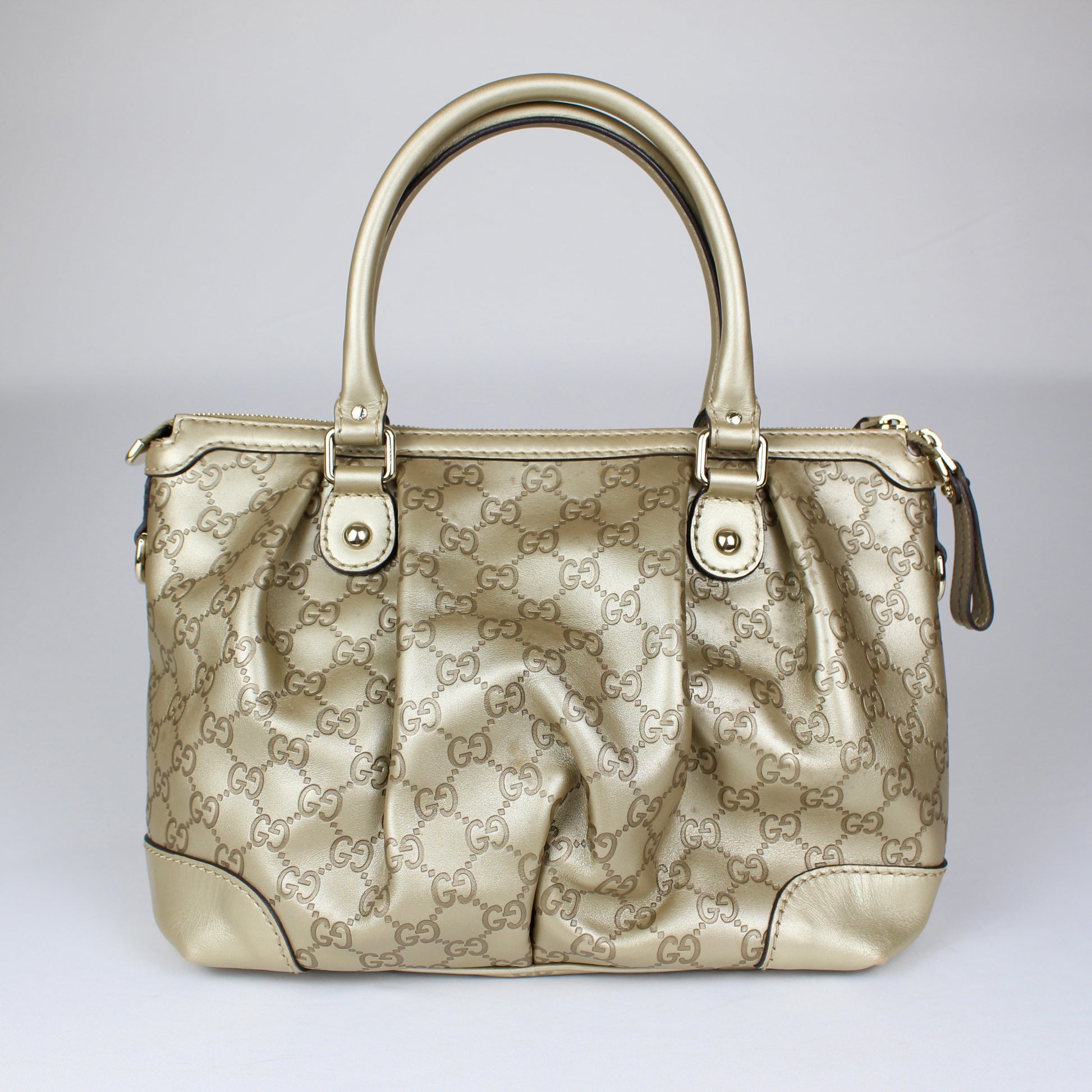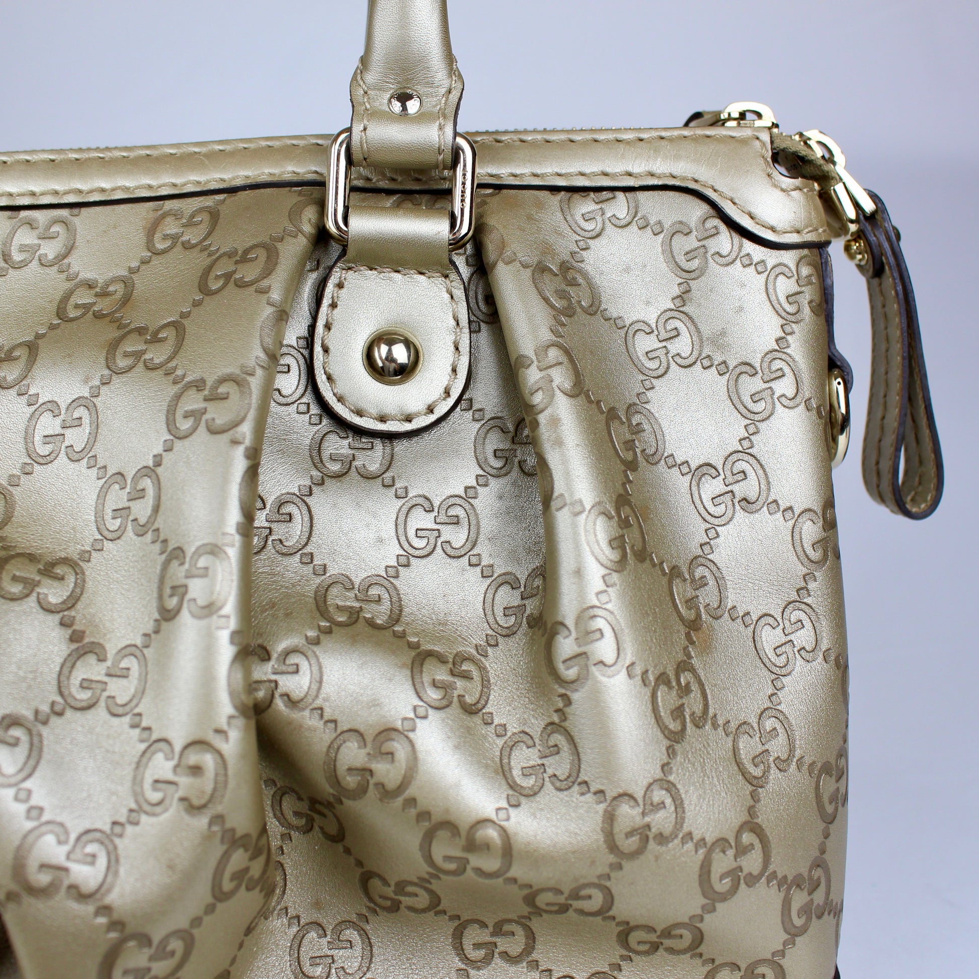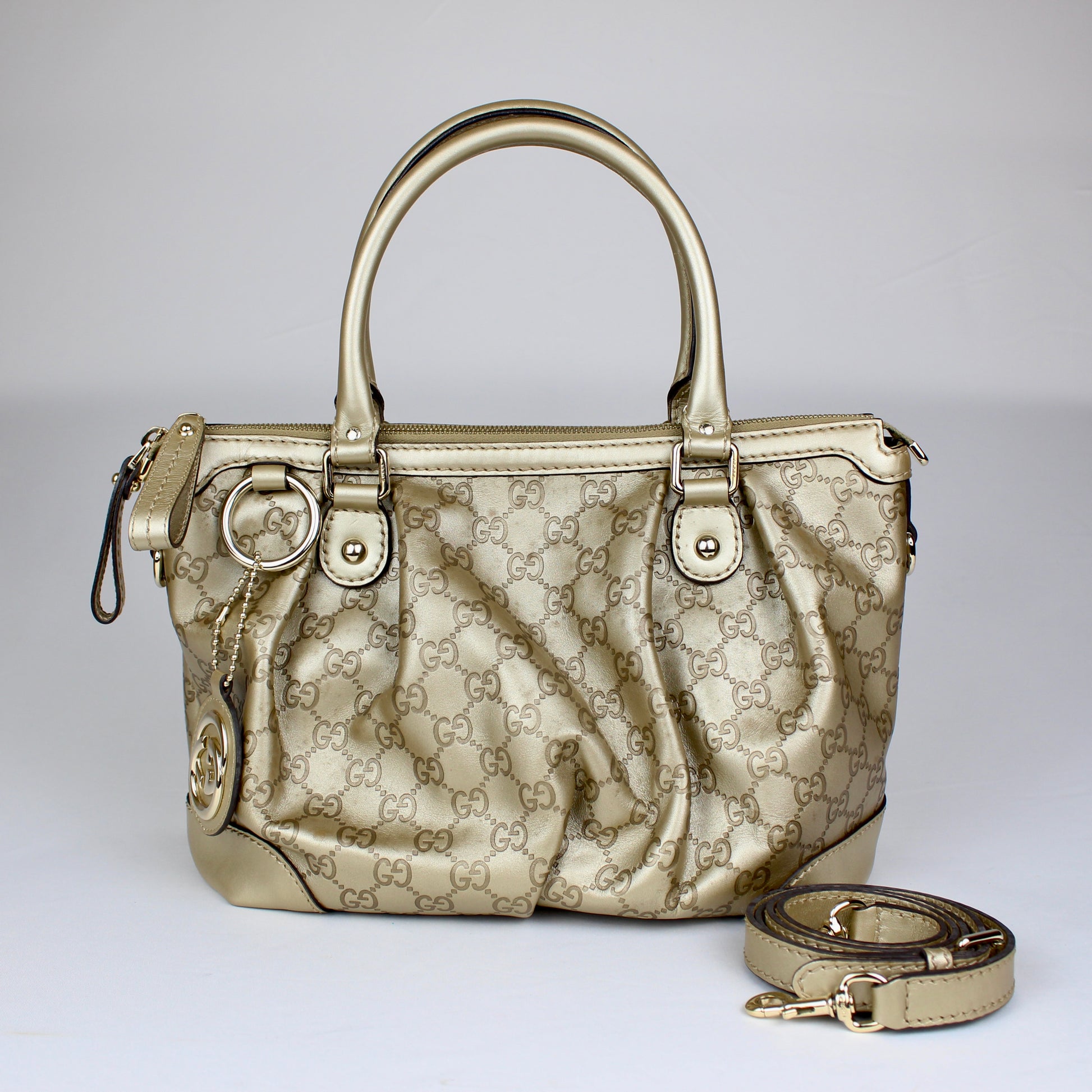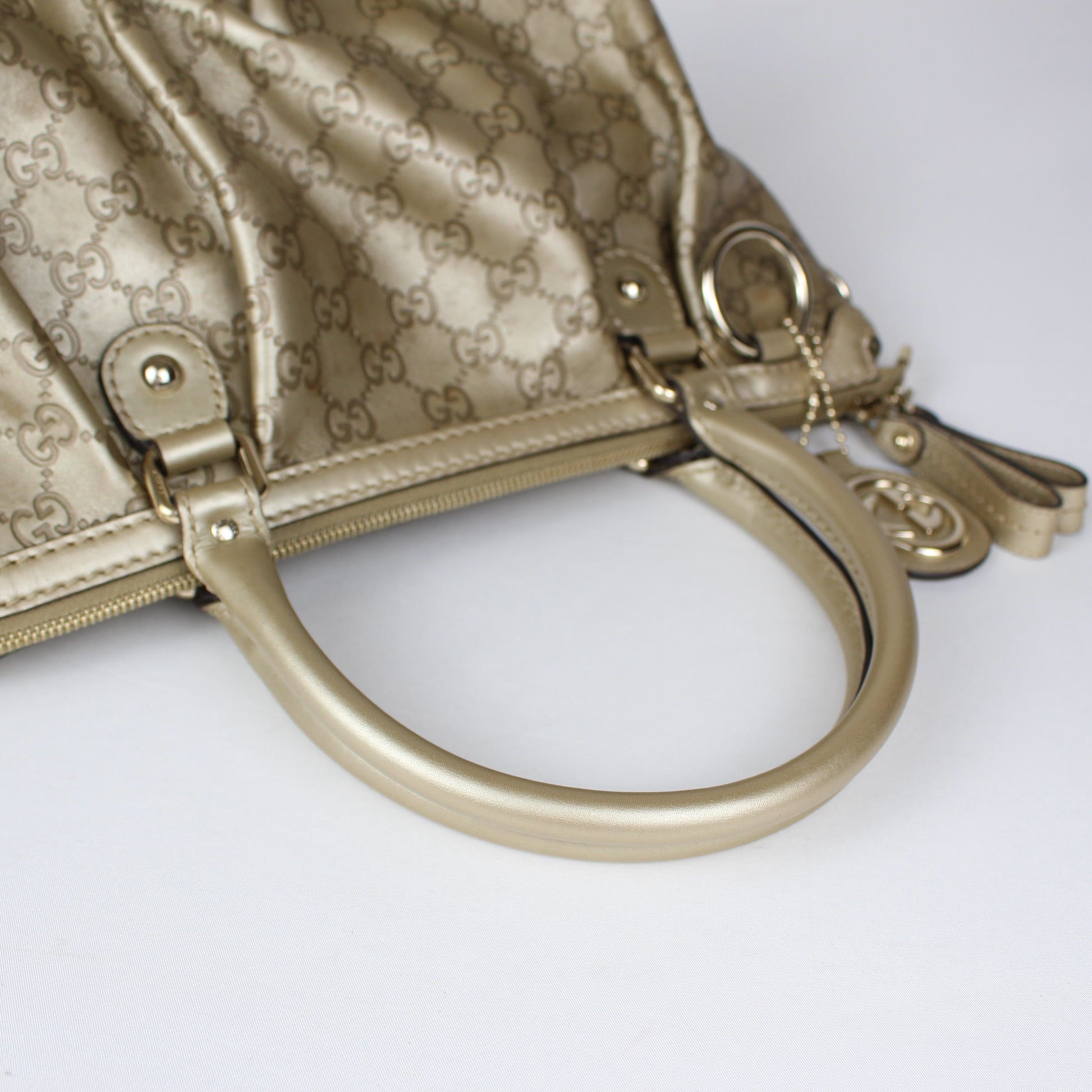 Gucci GG Monogram Gold Patent Leather Tote Bag with Shoulder Strap