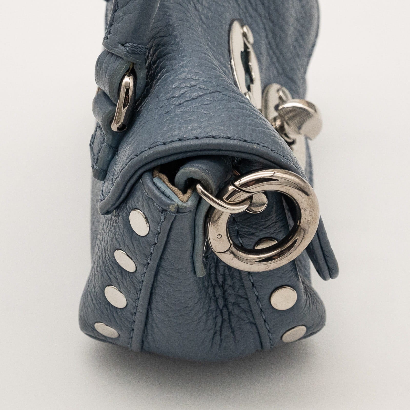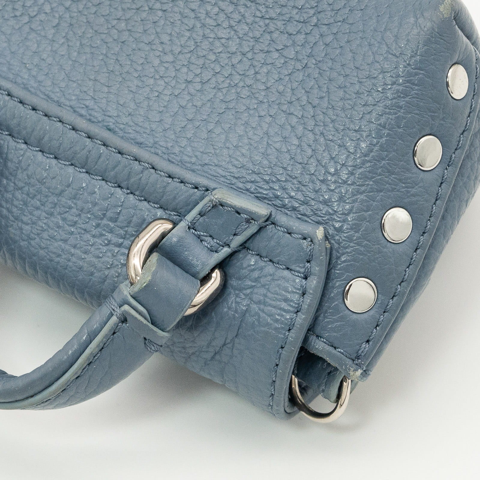 This charming Zanellato Postina Mini (often referred to as Postina Baby or Super Baby in various references) is a delightful, compact reinterpretation of the brand's iconic Postina line—inspired by the classic Italian postman's satchel from the 1950s film Il Postino. Crafted from luxurious, pebbled/grained calfskin leather in a soft, sophisticated slate blue (a versatile dusty blue-grey tone), this mini version captures the essence of Italian artisanal excellence with its textured, tactile finish that feels buttery-soft yet durable.