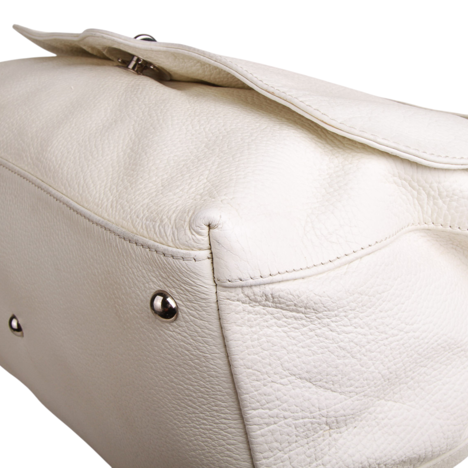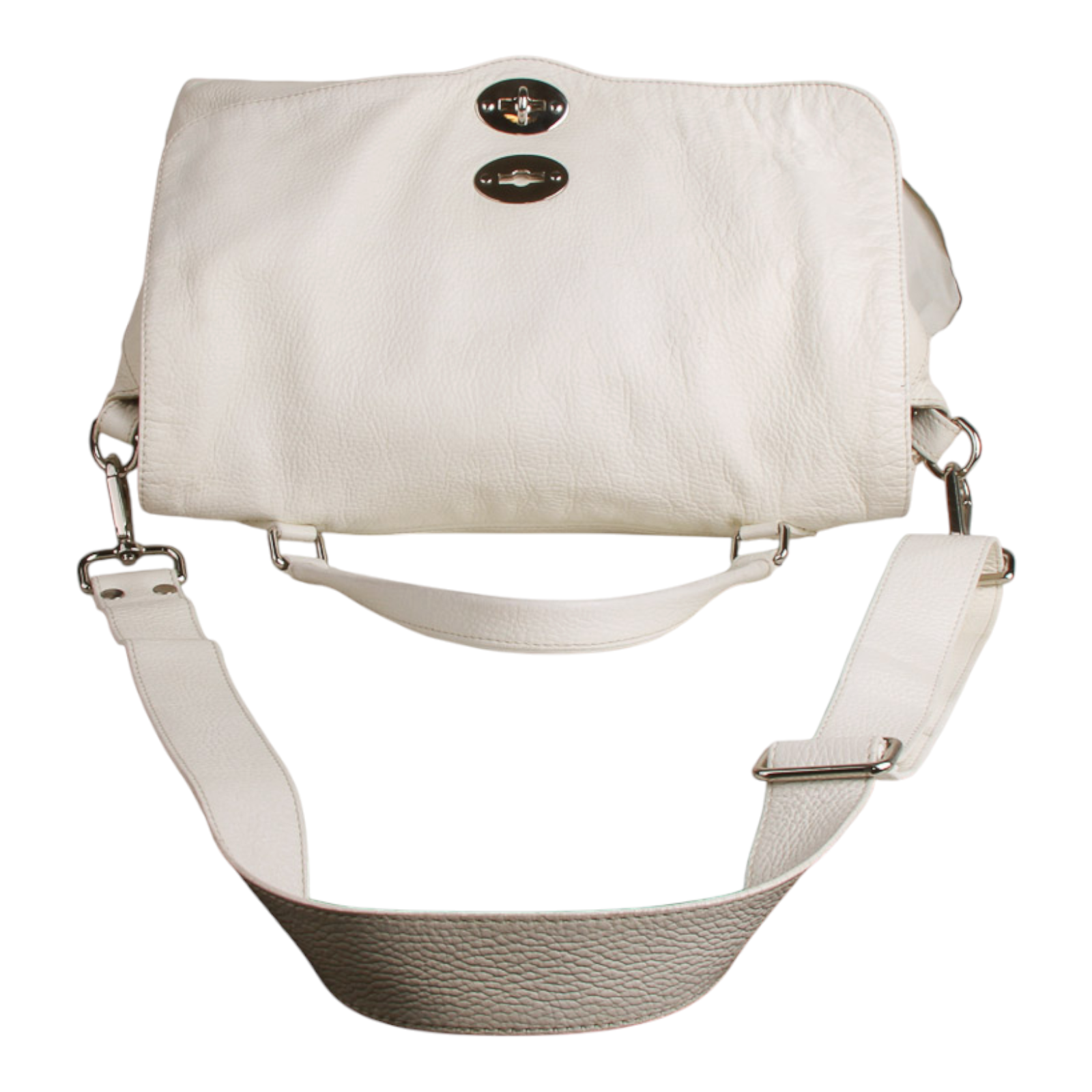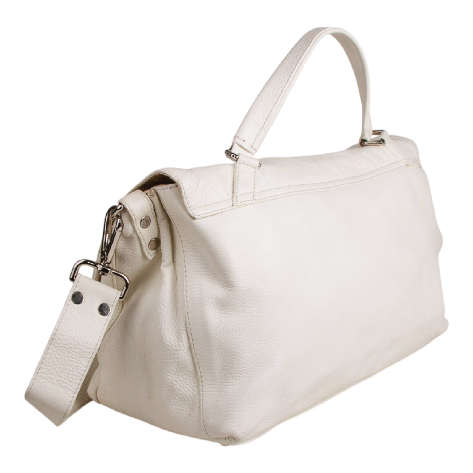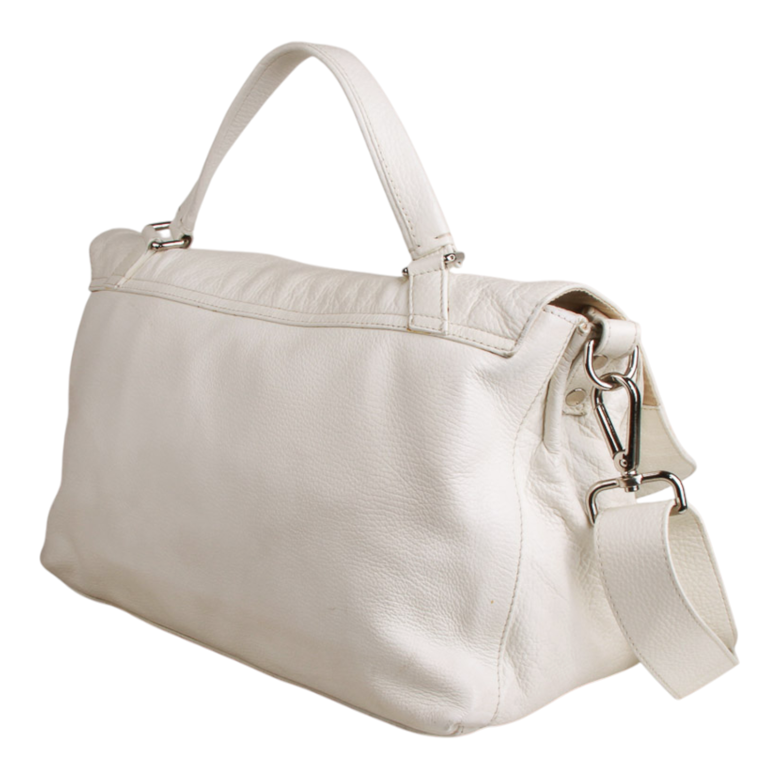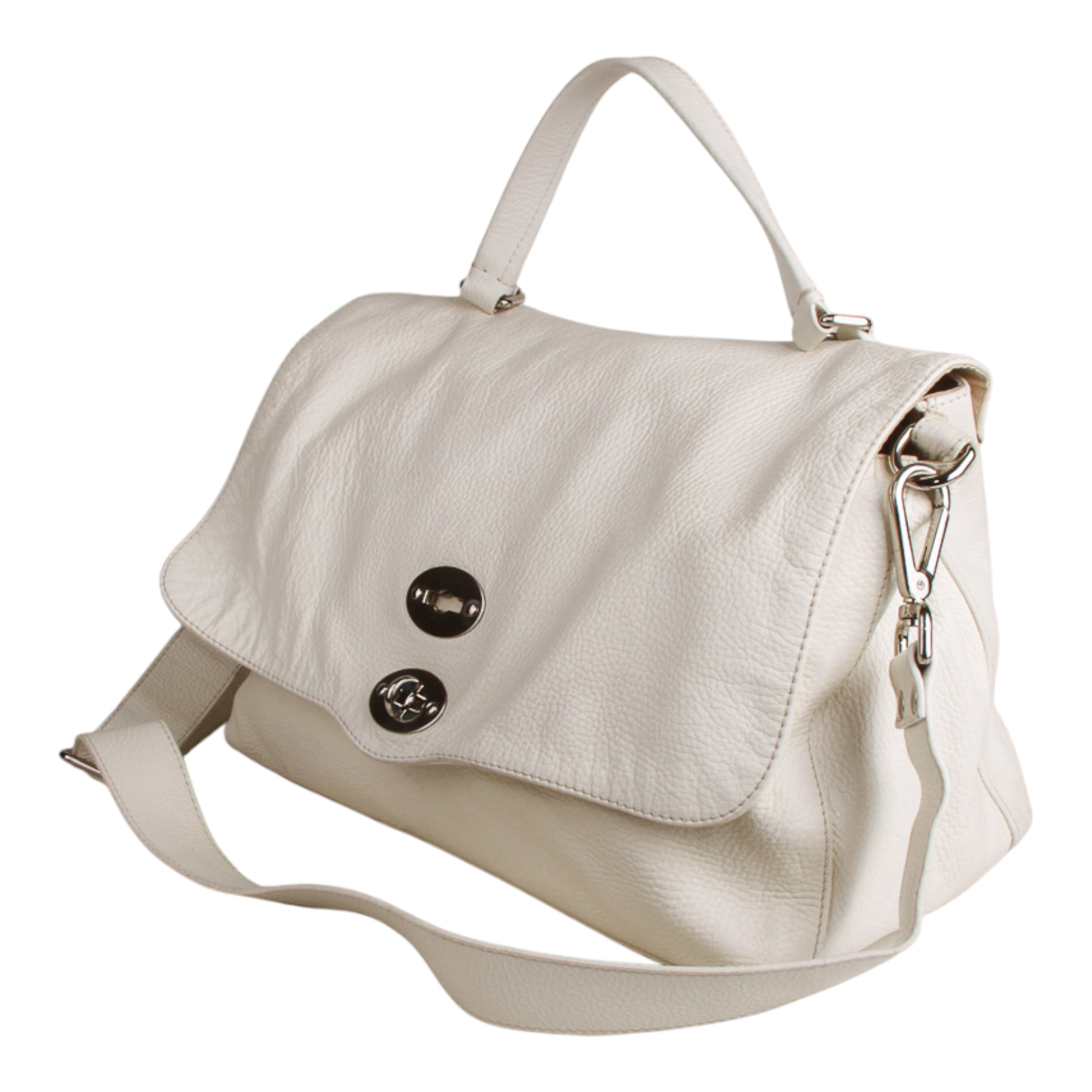 Zanellato “Postina” Medium Bag in White Leather Silver-Tone Hardware