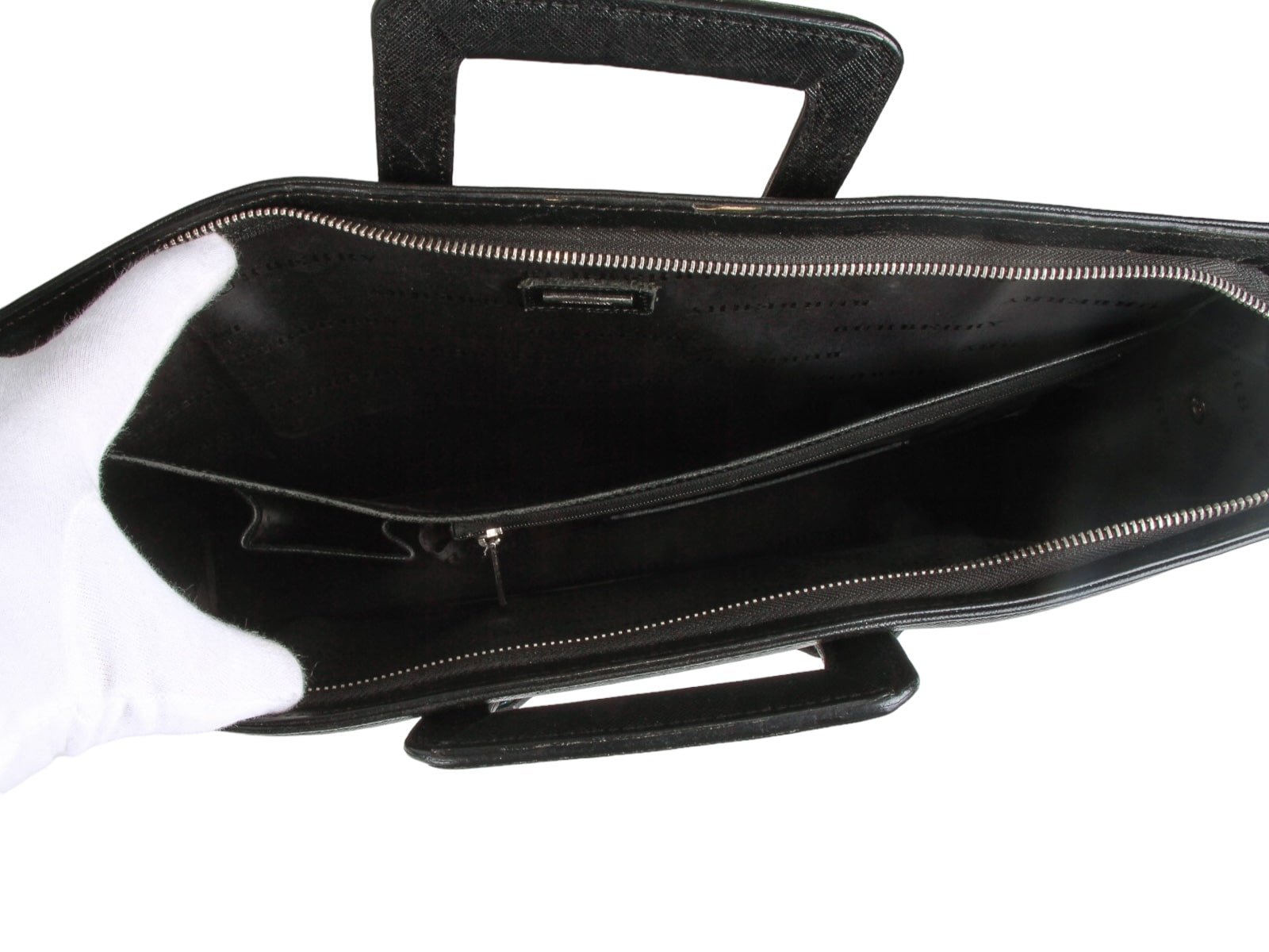 The spacious interior is lined with Burberry canvas. It has one main pocket, side pocket and zip compartment