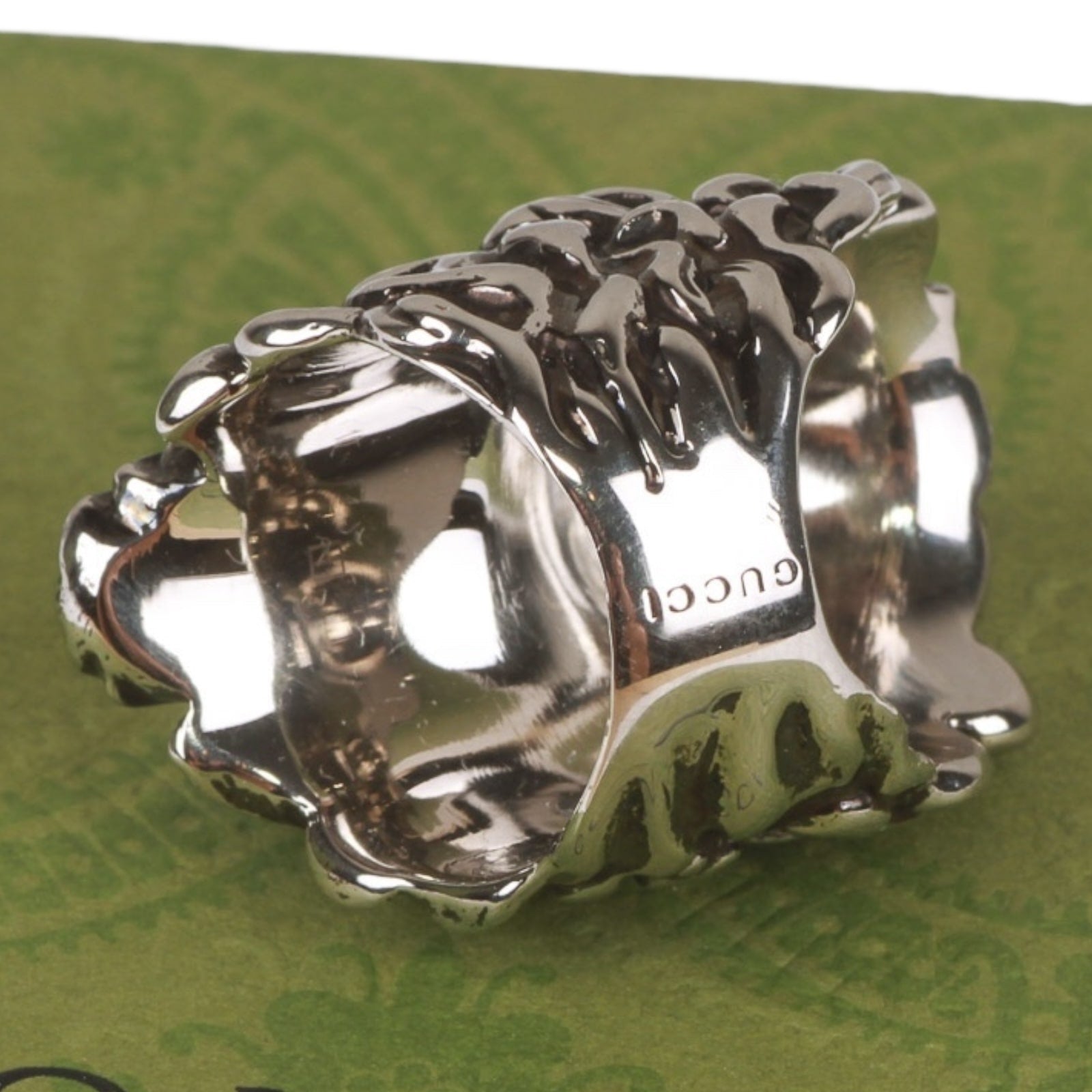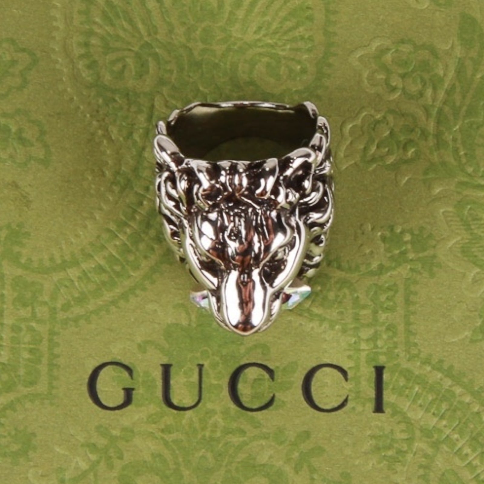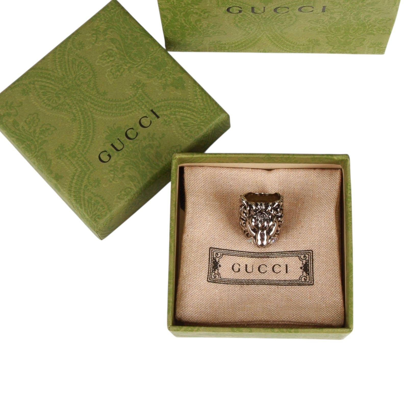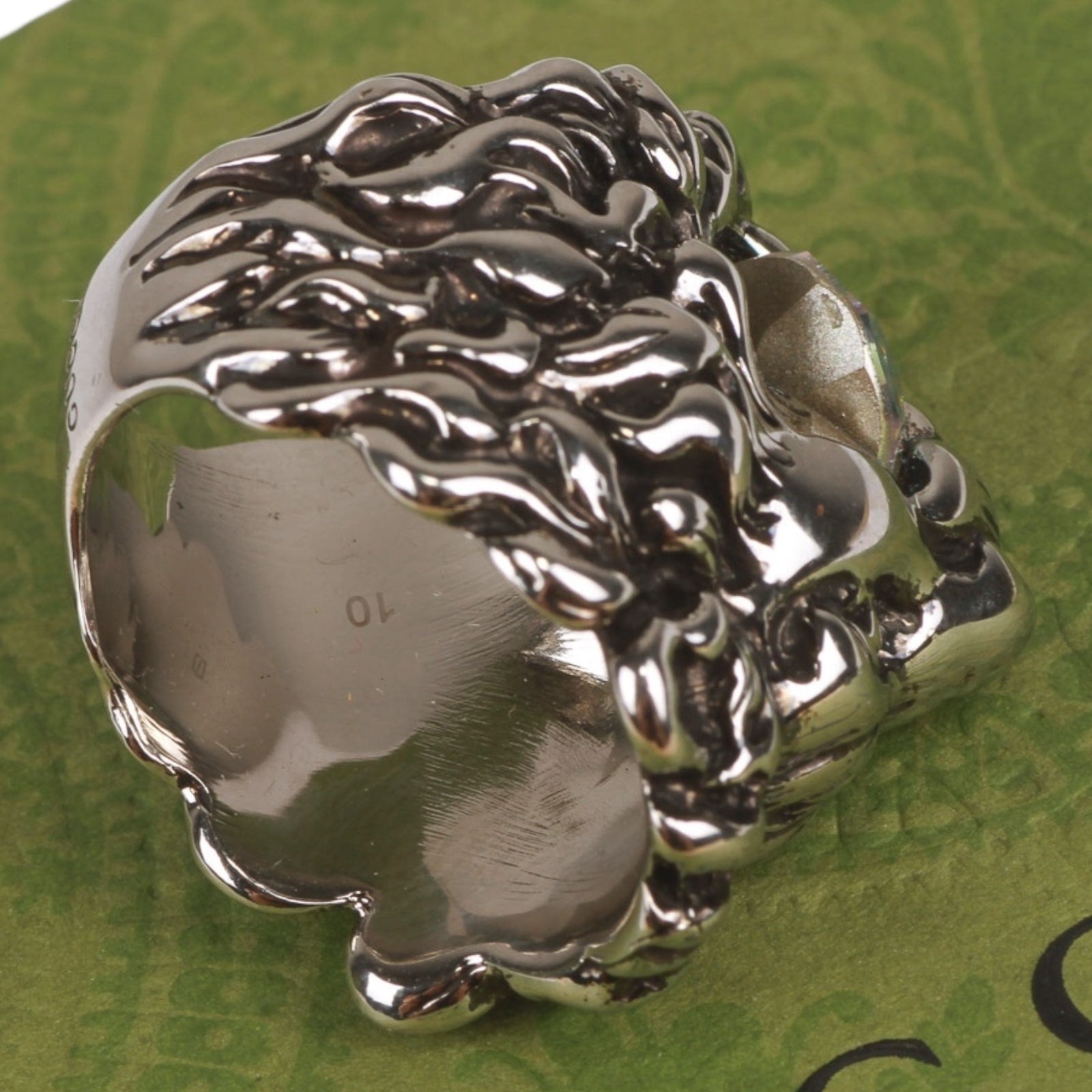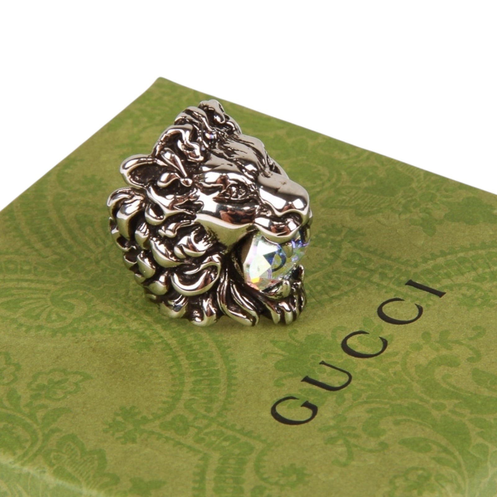 Gucci offers this masculine ring to add to your jewellery collection, perfectly complementing your finest watches and bracelets. It's expertly sculpted to form the head of a lion, which holds a crystal stone in its mouth – one that's been specially treated in Italy to create the cracked effect.