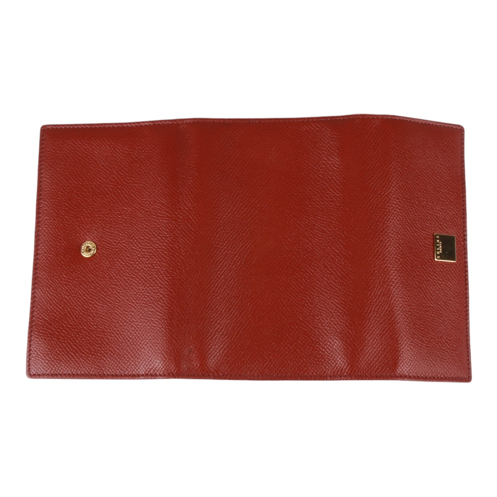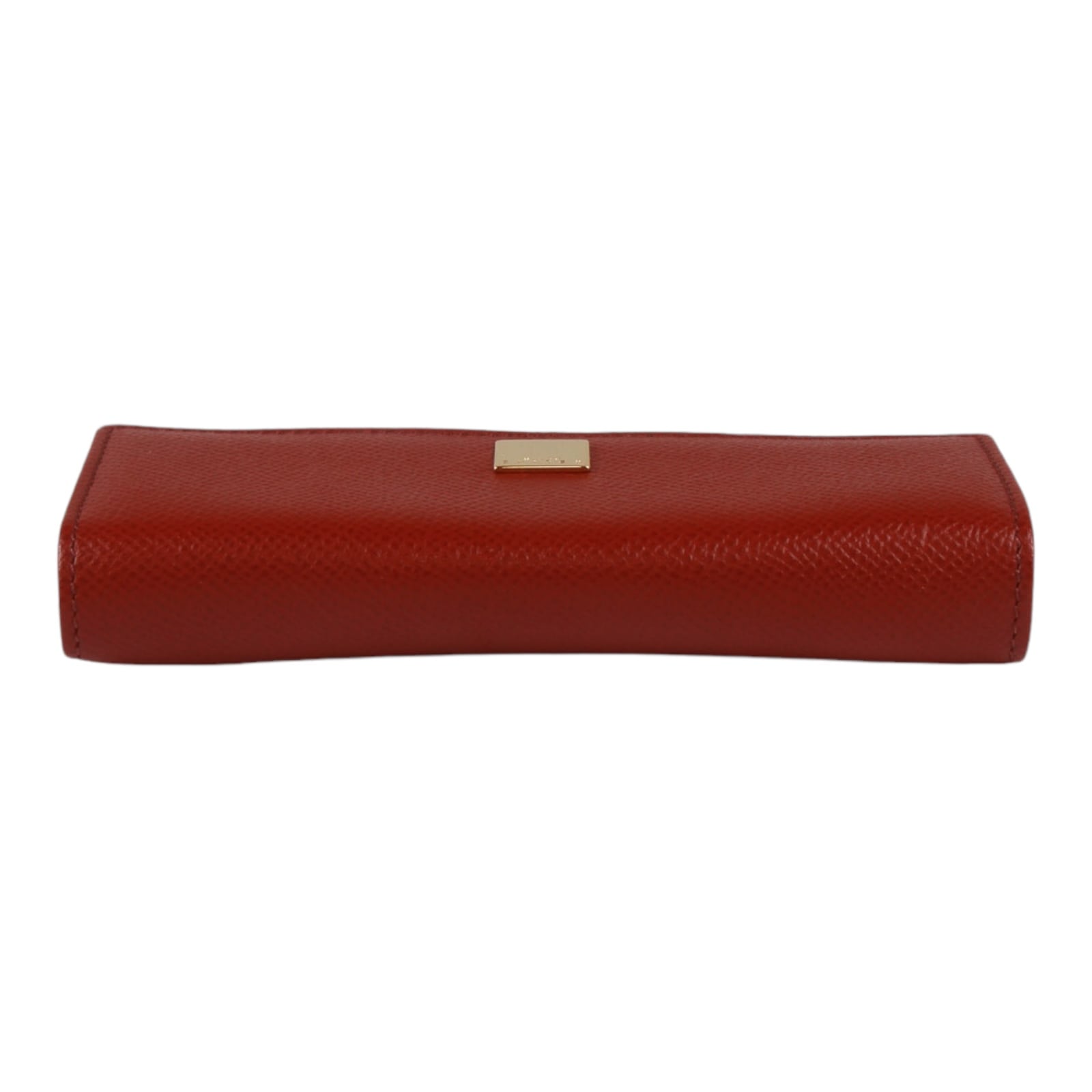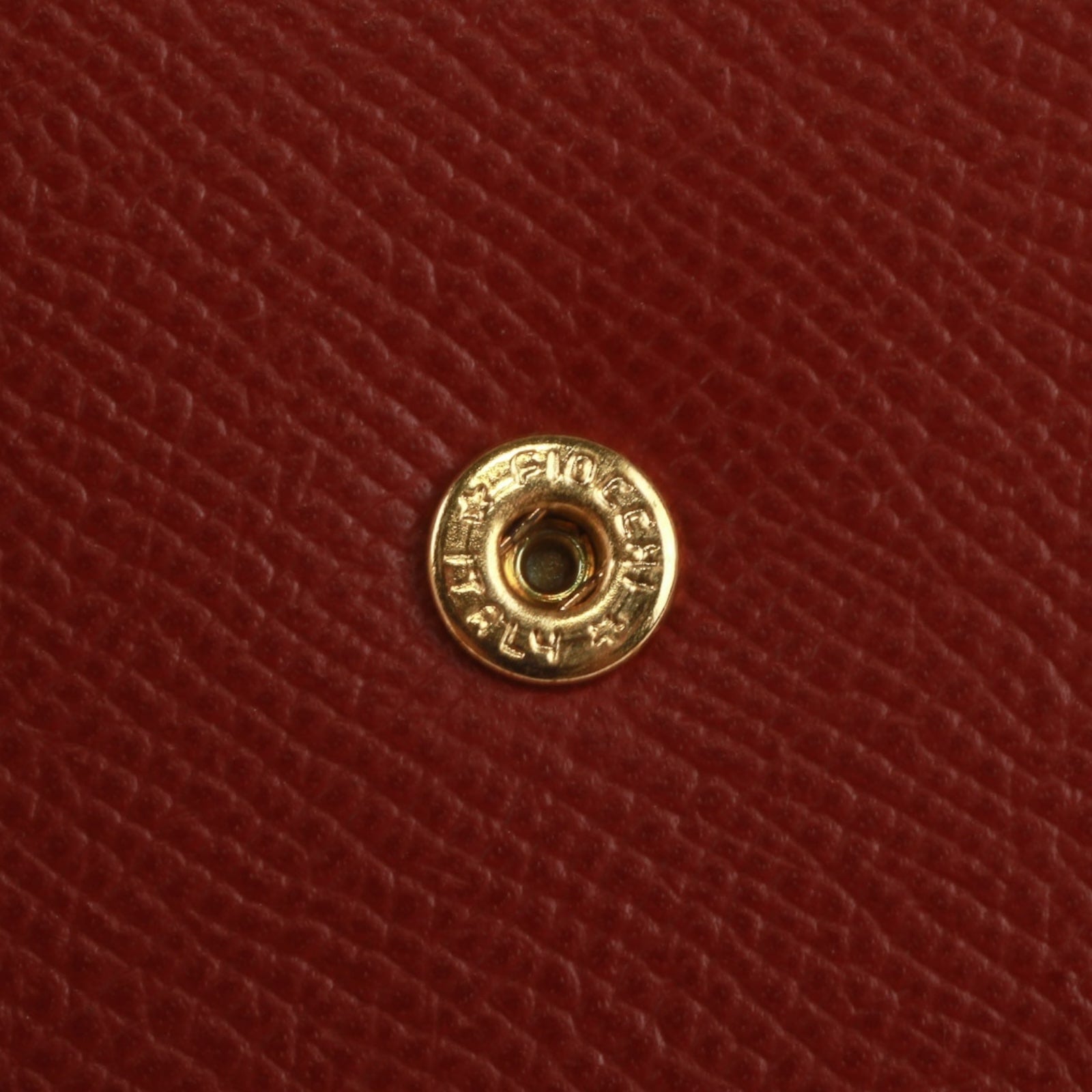 Very good pre-owned condition. The exterior red leather remains vibrant and well-preserved with minimal signs of wear. Edges and corners are sharp and intact. The interior is pristine, and the gold hardware retains its original luster with only very light micro scratches. Includes original box. Note: This compact design does not include a full-length currency compartment.