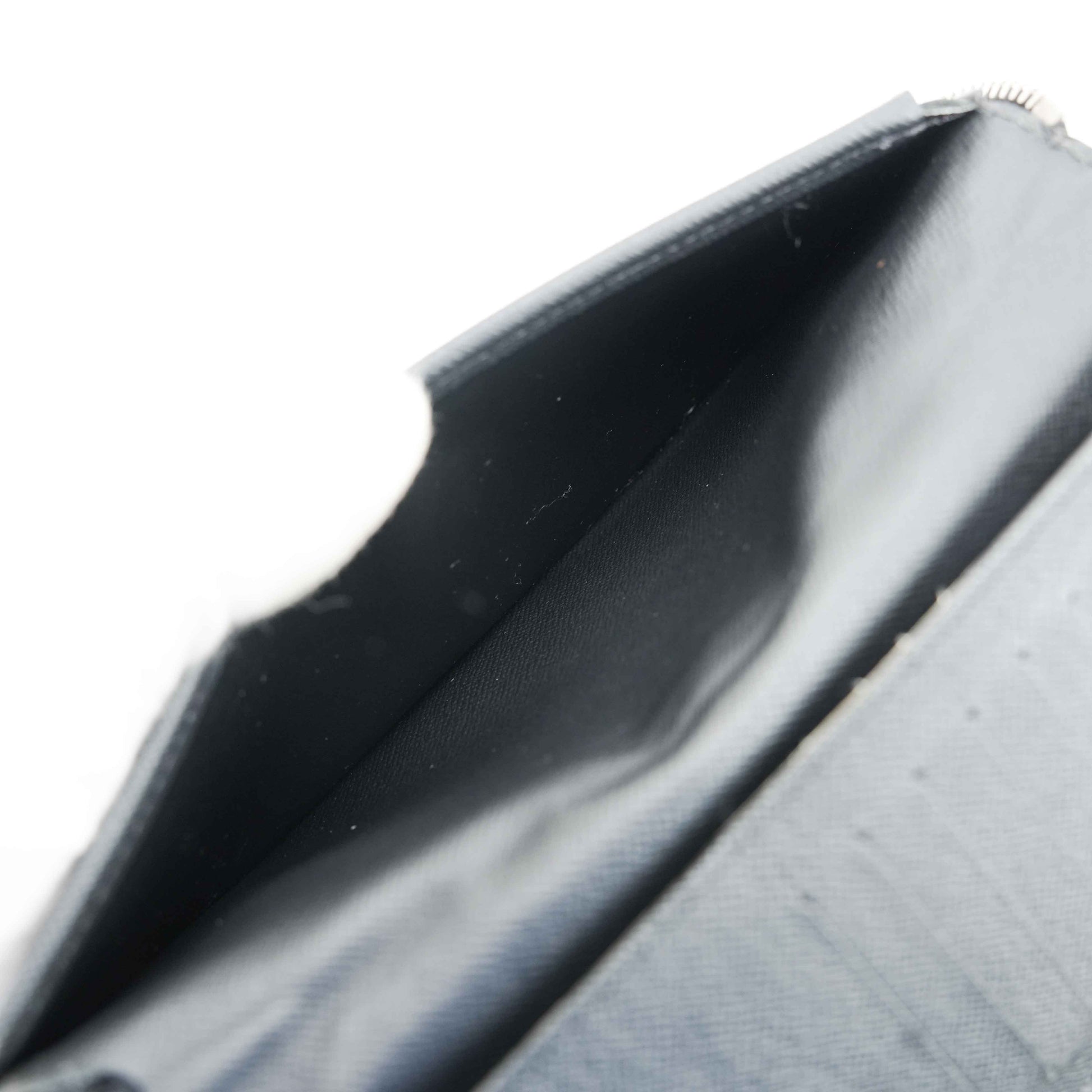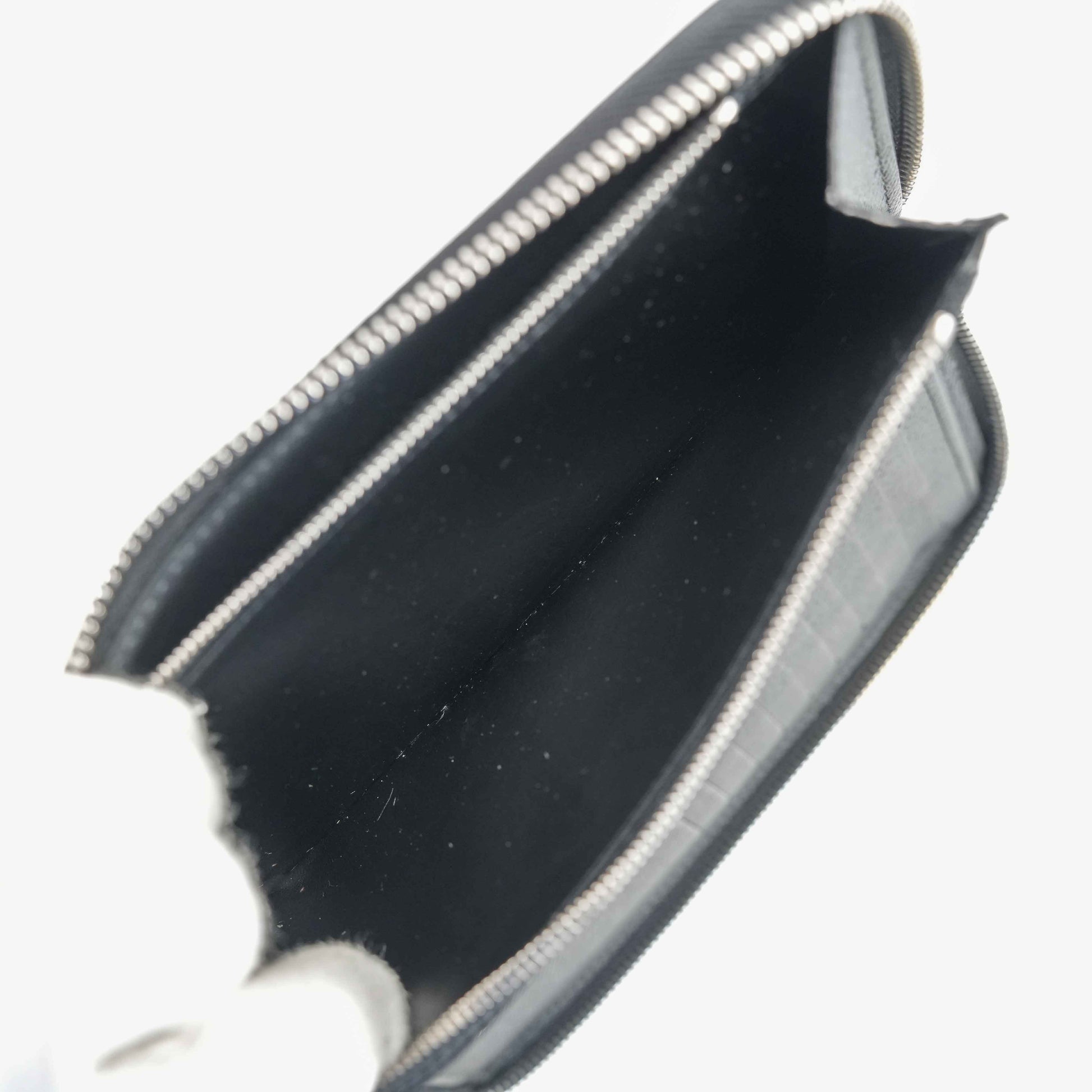 The iconic LV initials are subtly embossed on the front corner, adding understated luxury. Inside, the wallet opens to a matching black leather lining with ample space for cards, notes, and receipts. A full zip-around closure ensures security for your essentials.
