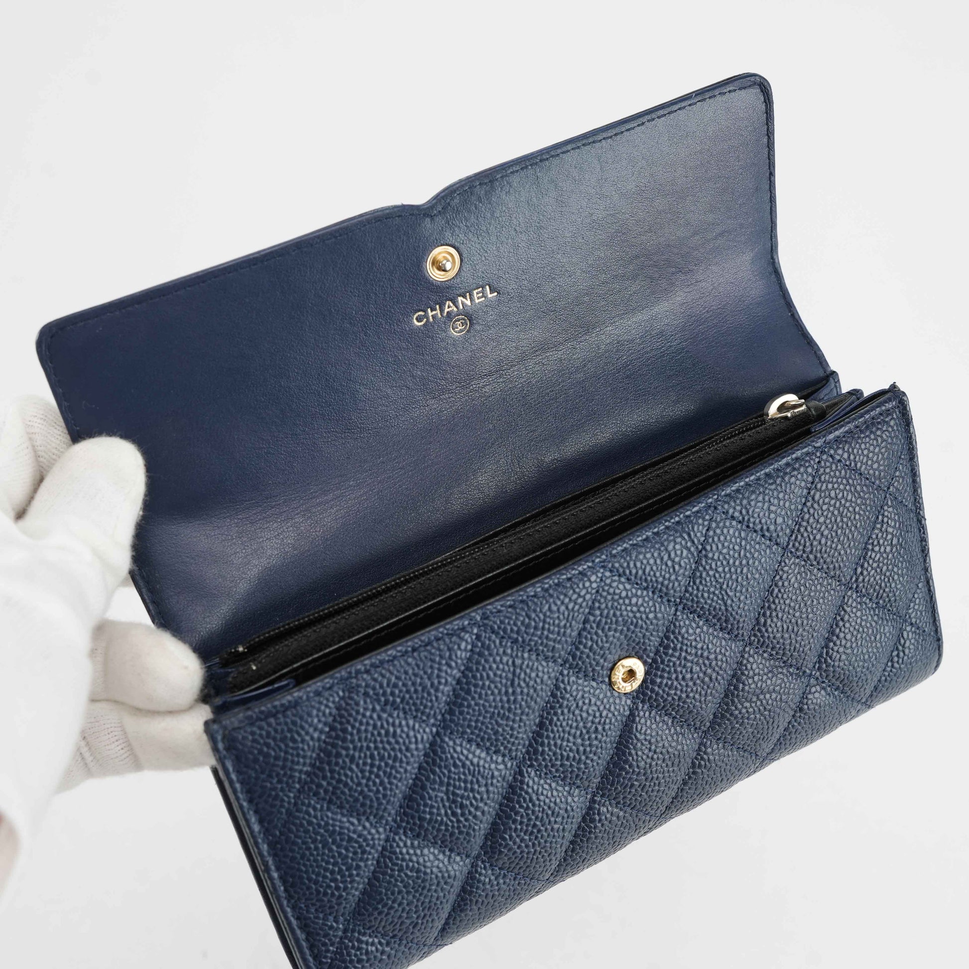 Chanel Timeless CC Long Wallet in Navy Blue Caviar Leather