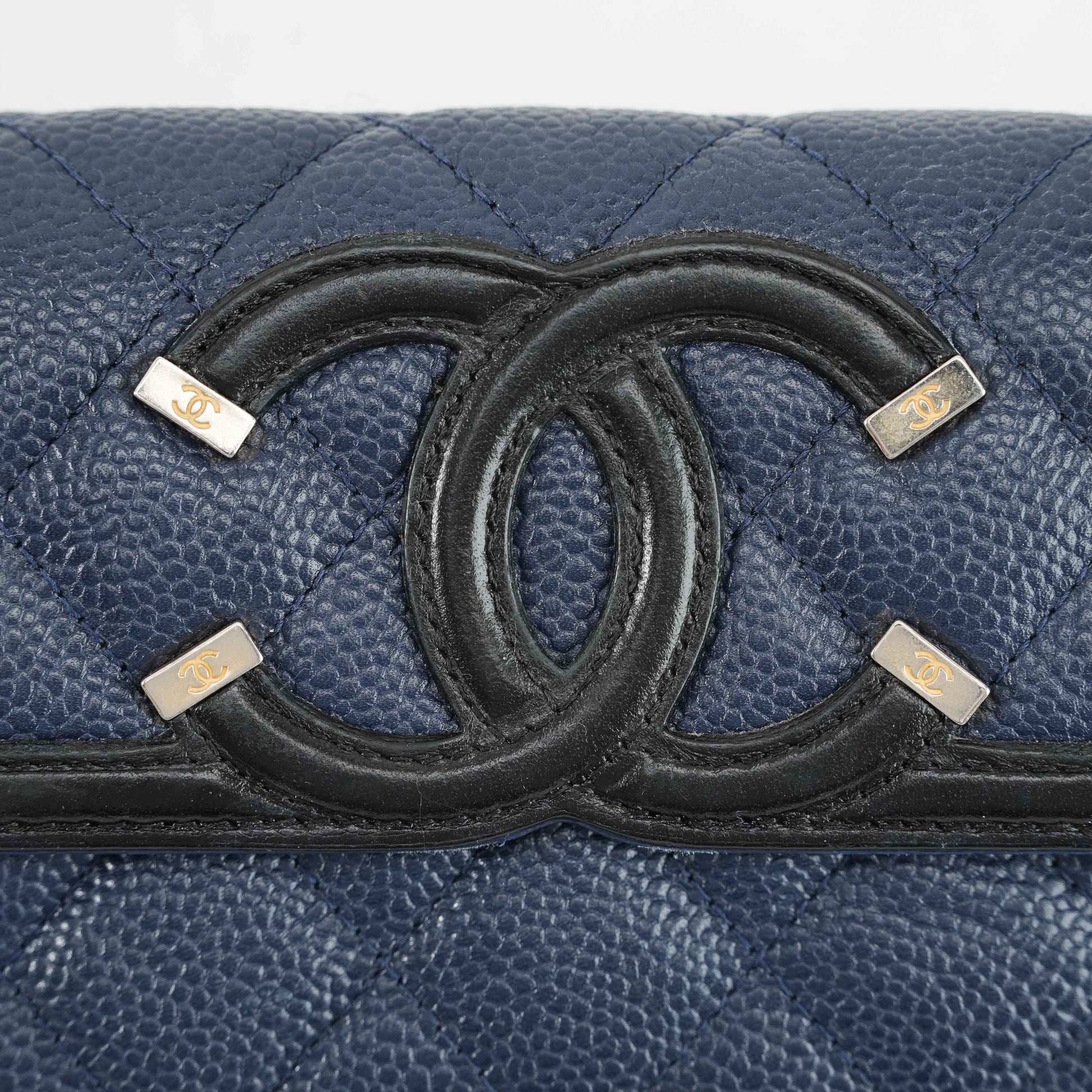 Add a touch of classic elegance to your collection with this beautiful Chanel Timeless CC Long Wallet. Crafted from luxurious navy blue caviar leather, this wallet features the iconic quilted pattern and an oversized CC logo on the front, highlighted with silver-tone metal accents for a sophisticated finish.