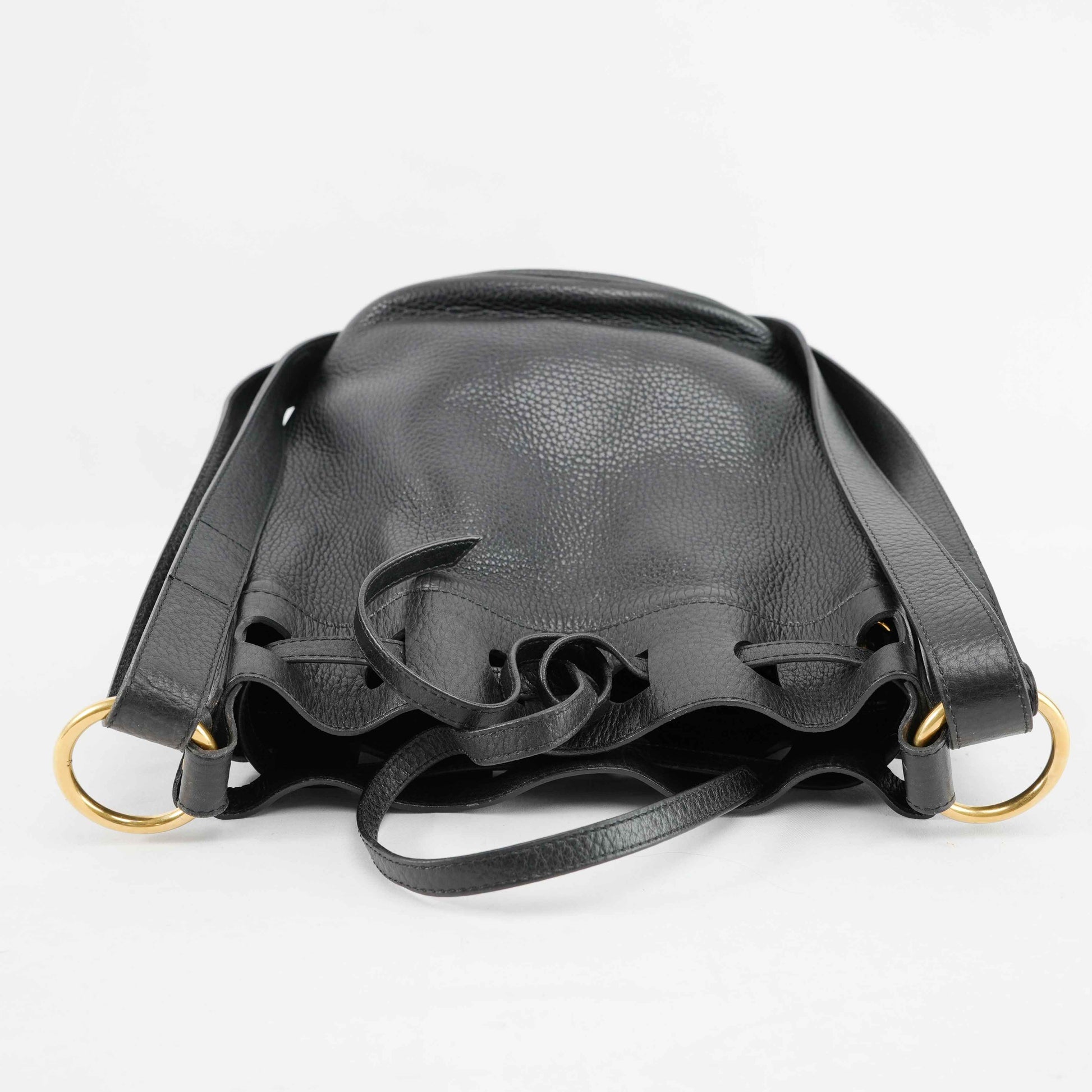 Delvaux Le Sac Seau Drawstring Bucket Bag in Black Taurillon Leather