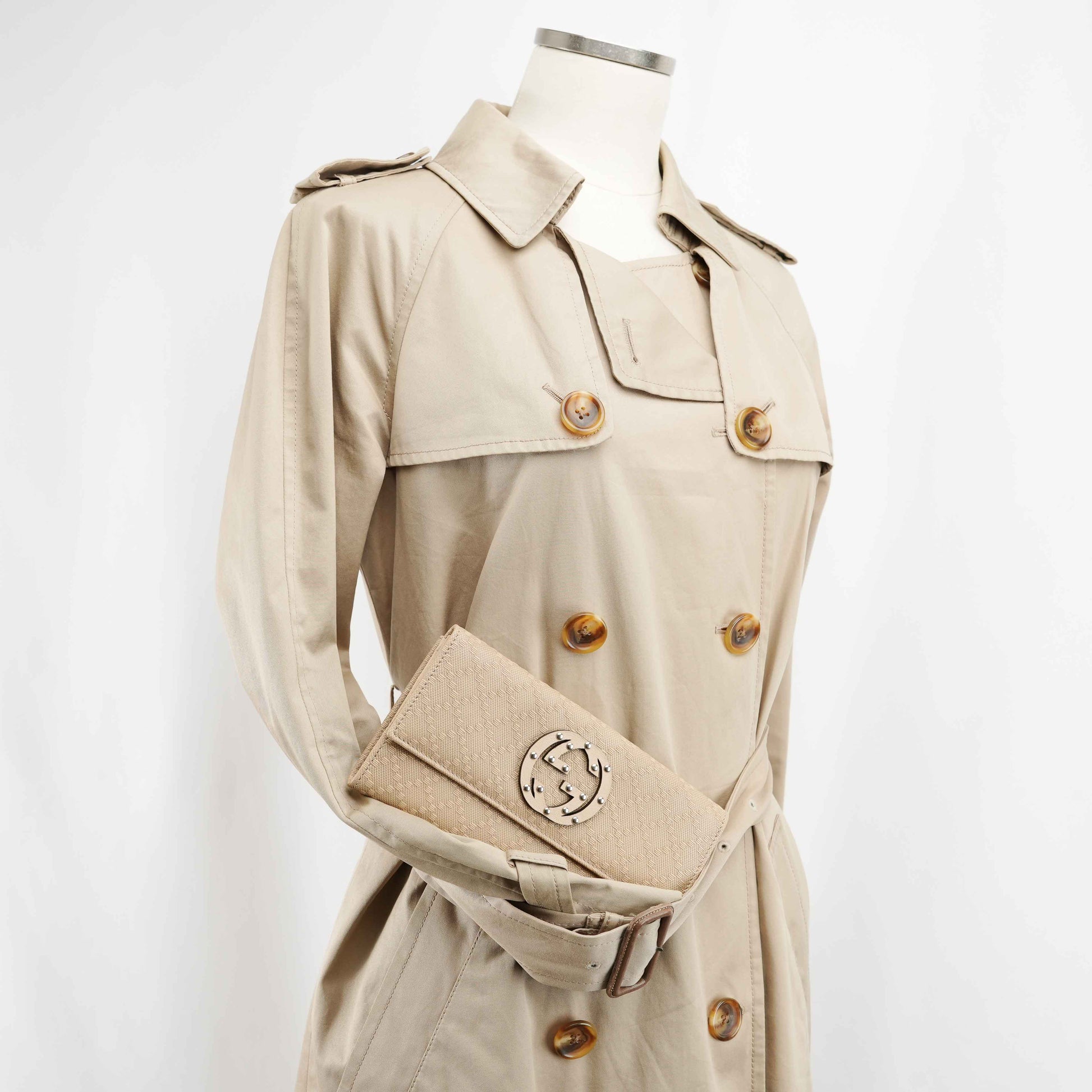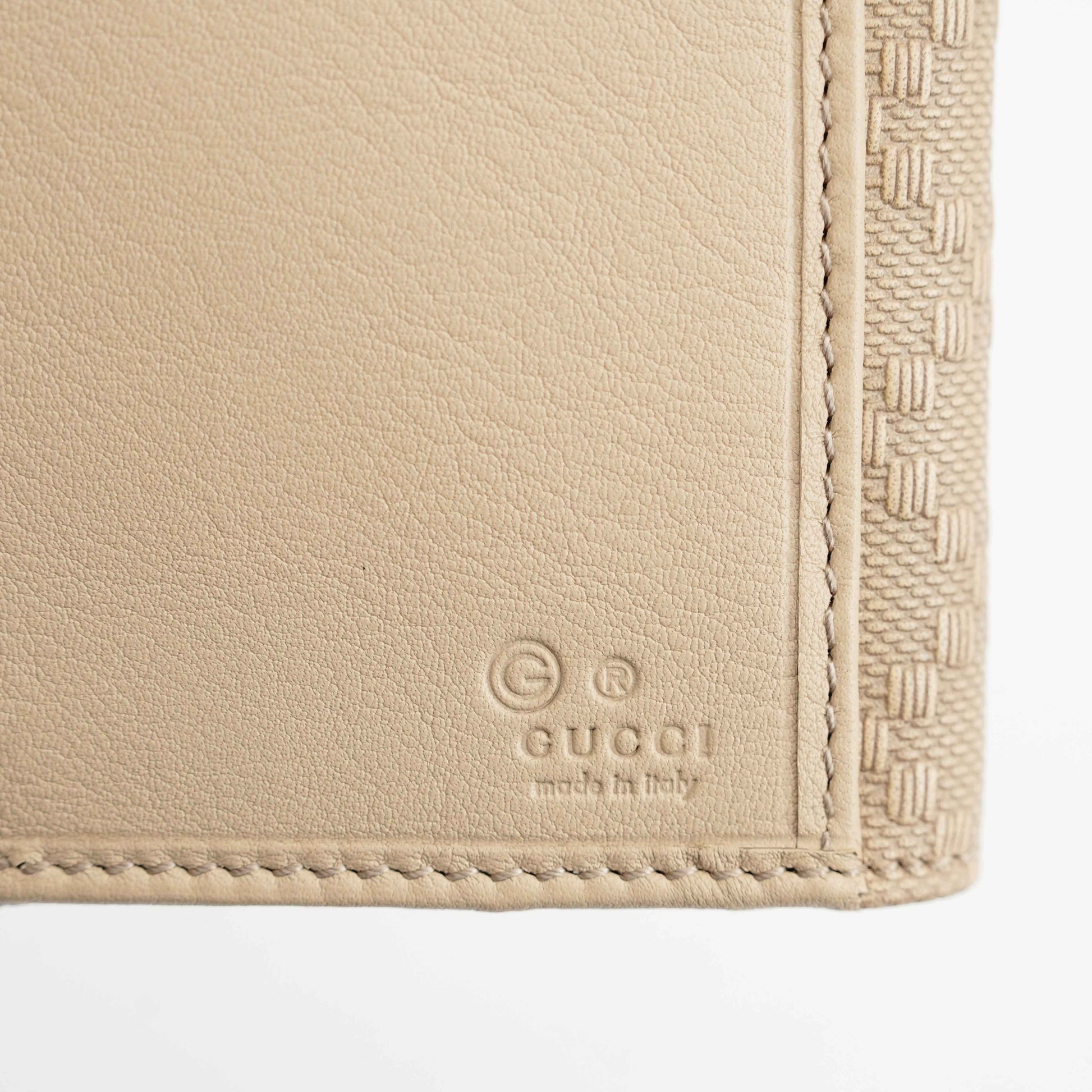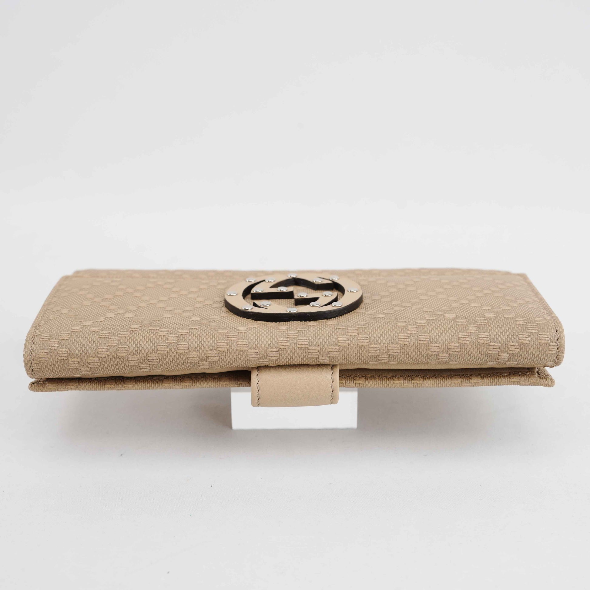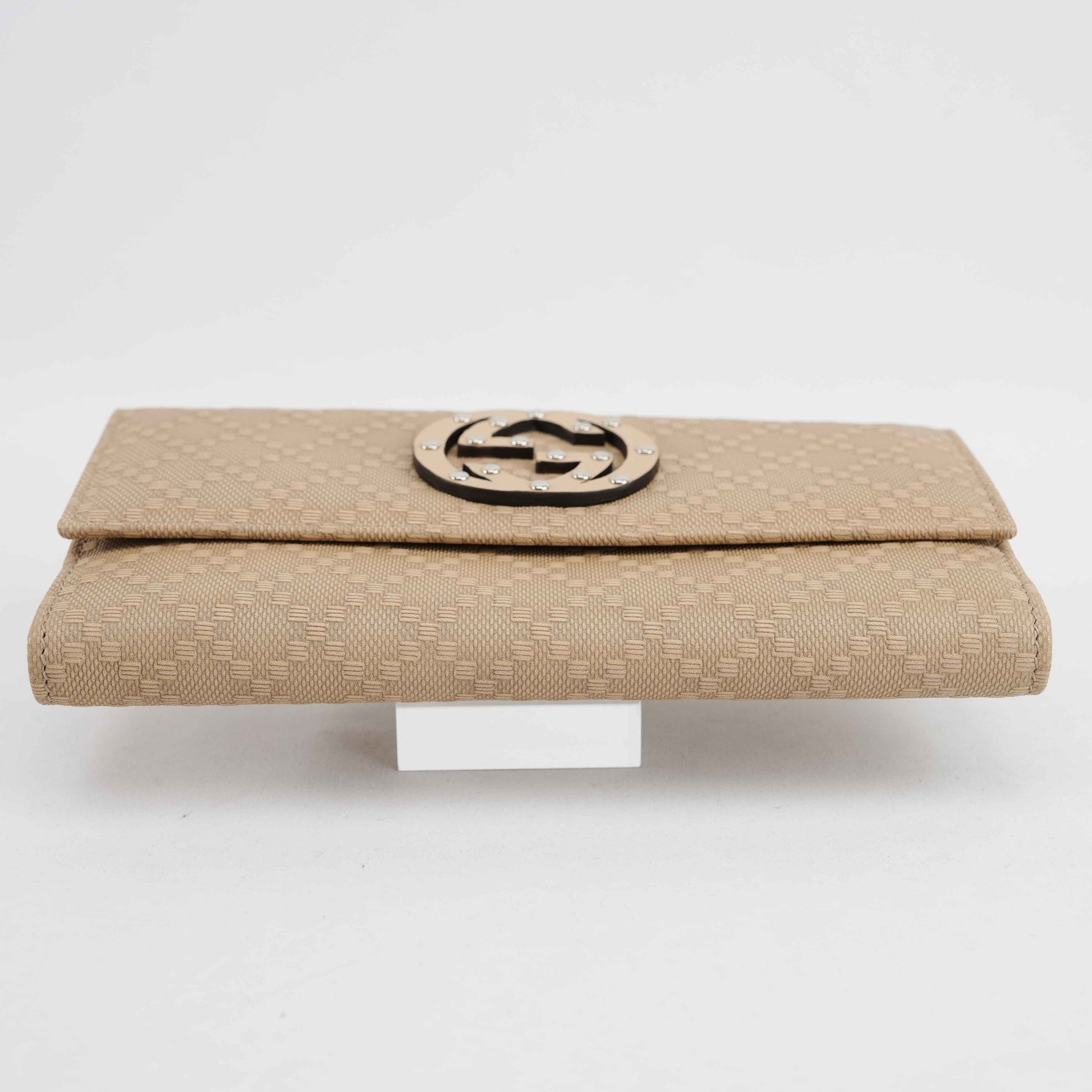 Gucci Beige Jacquard Canvas Trifold Wallet with Studded GG Logo – Model 231843