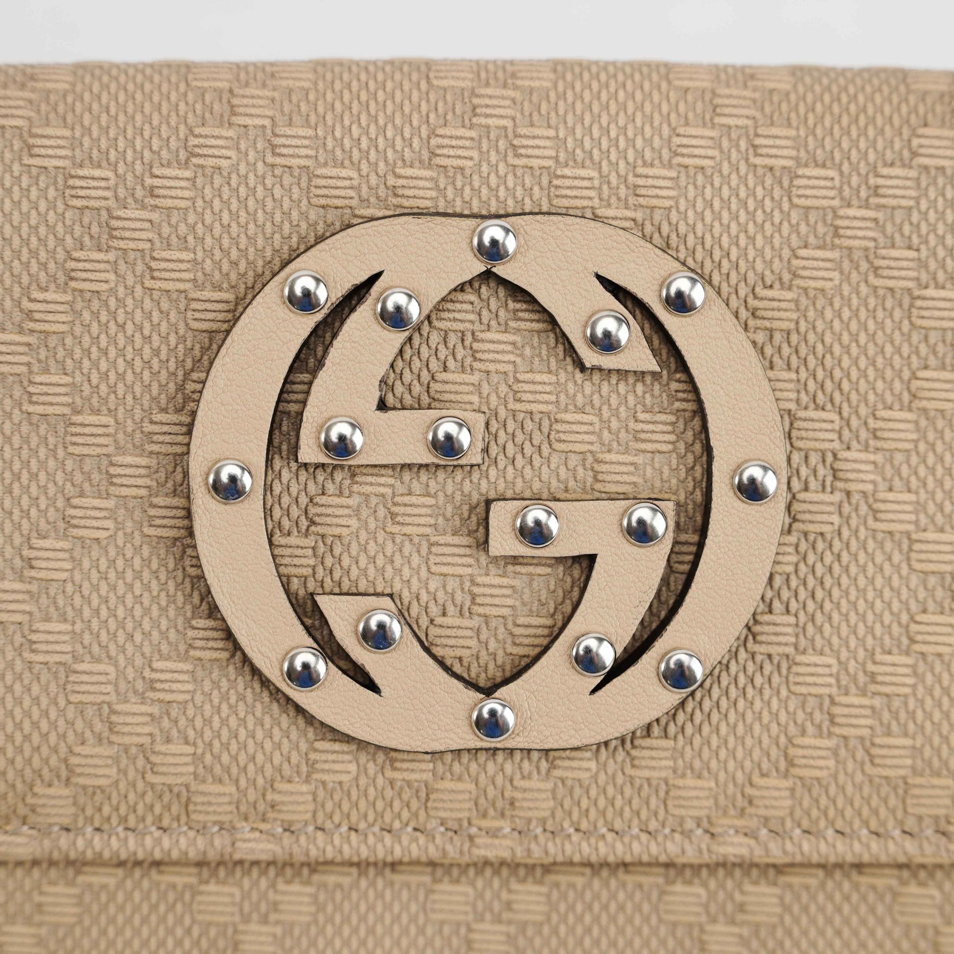 Large metallic GG logo with stud embellishments