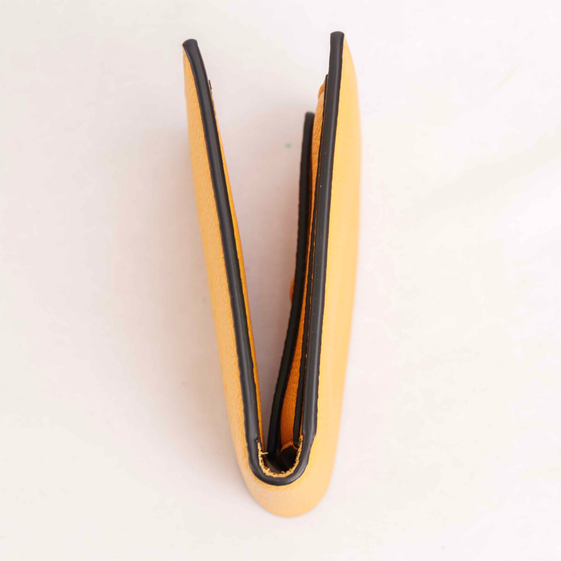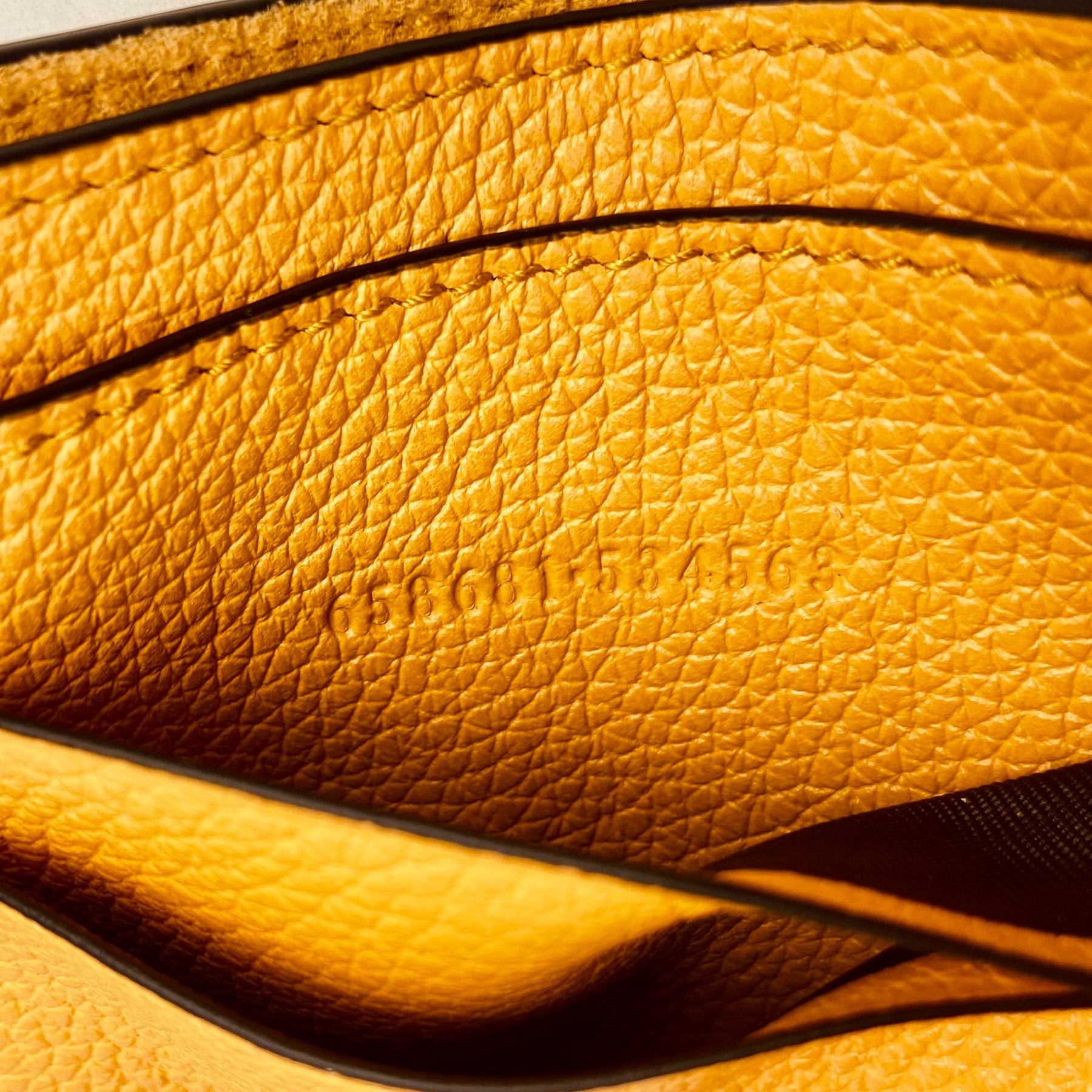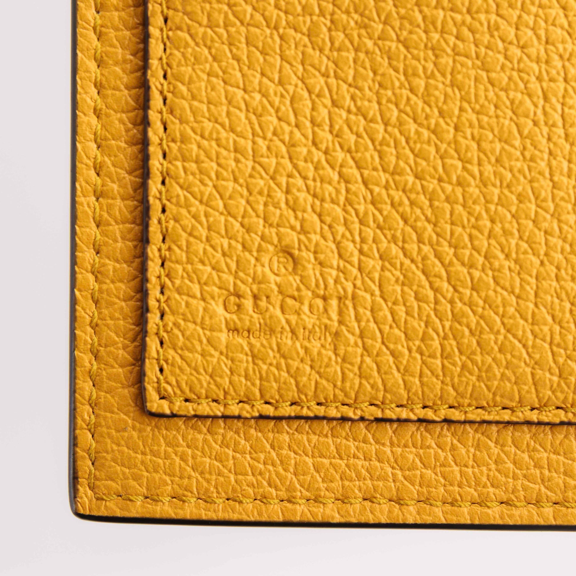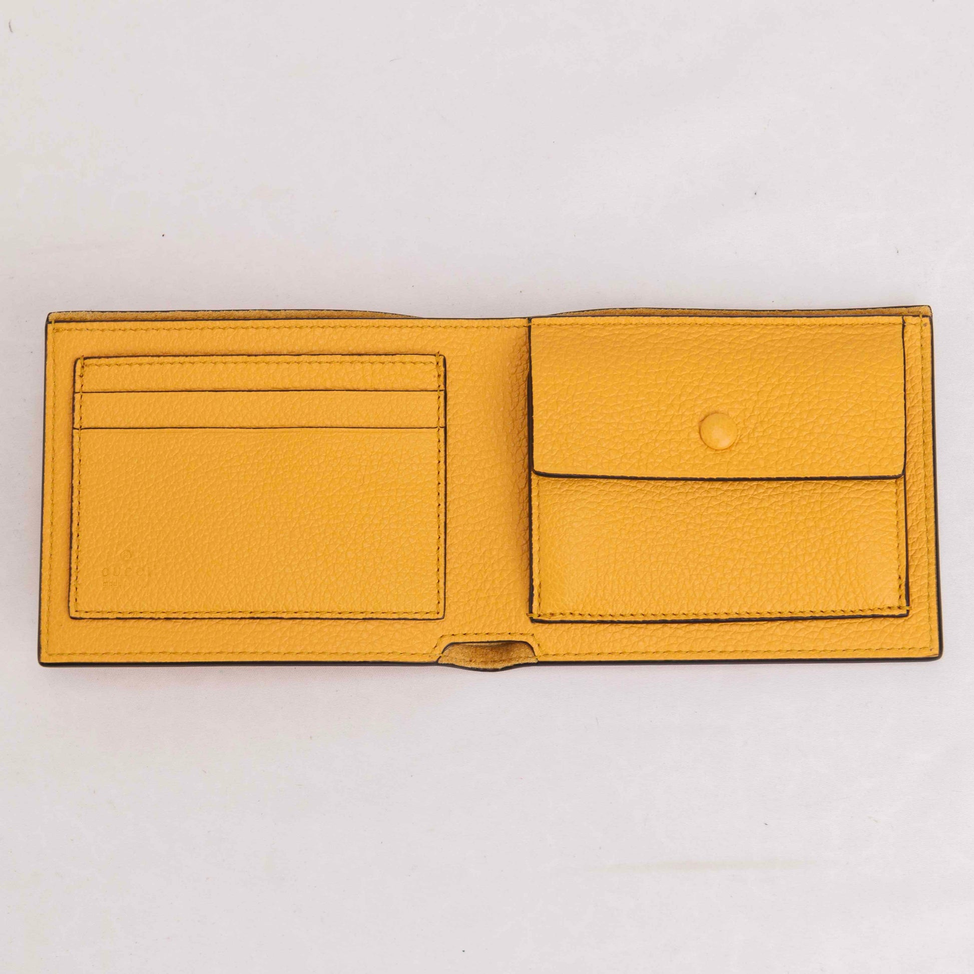 This stylishly crafted Gucci bi-fold wallet features a striking textured yellow leather body with the embossed Gucci logo.