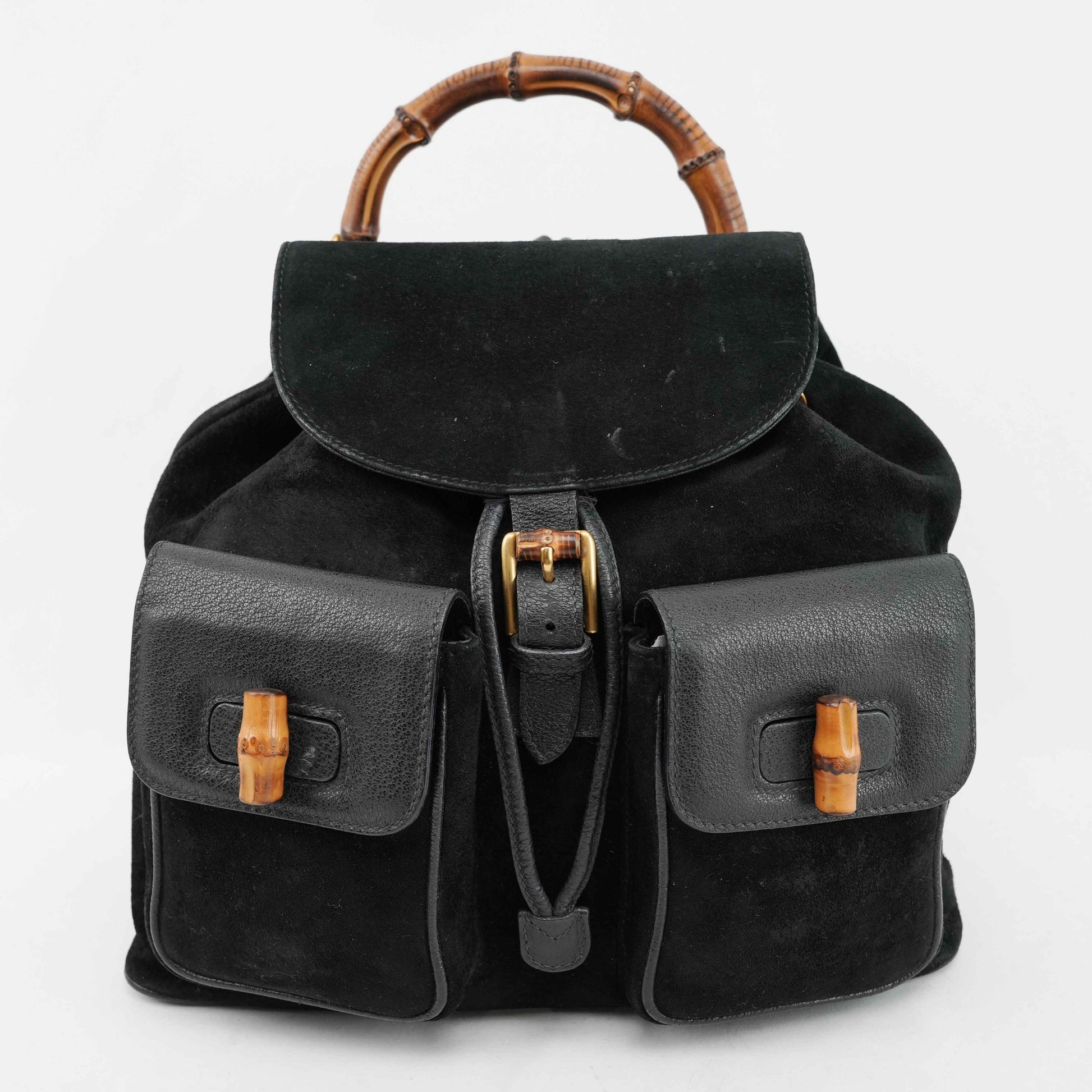 Gucci Vintage Bamboo/Leather & Suede Backpack in Black
