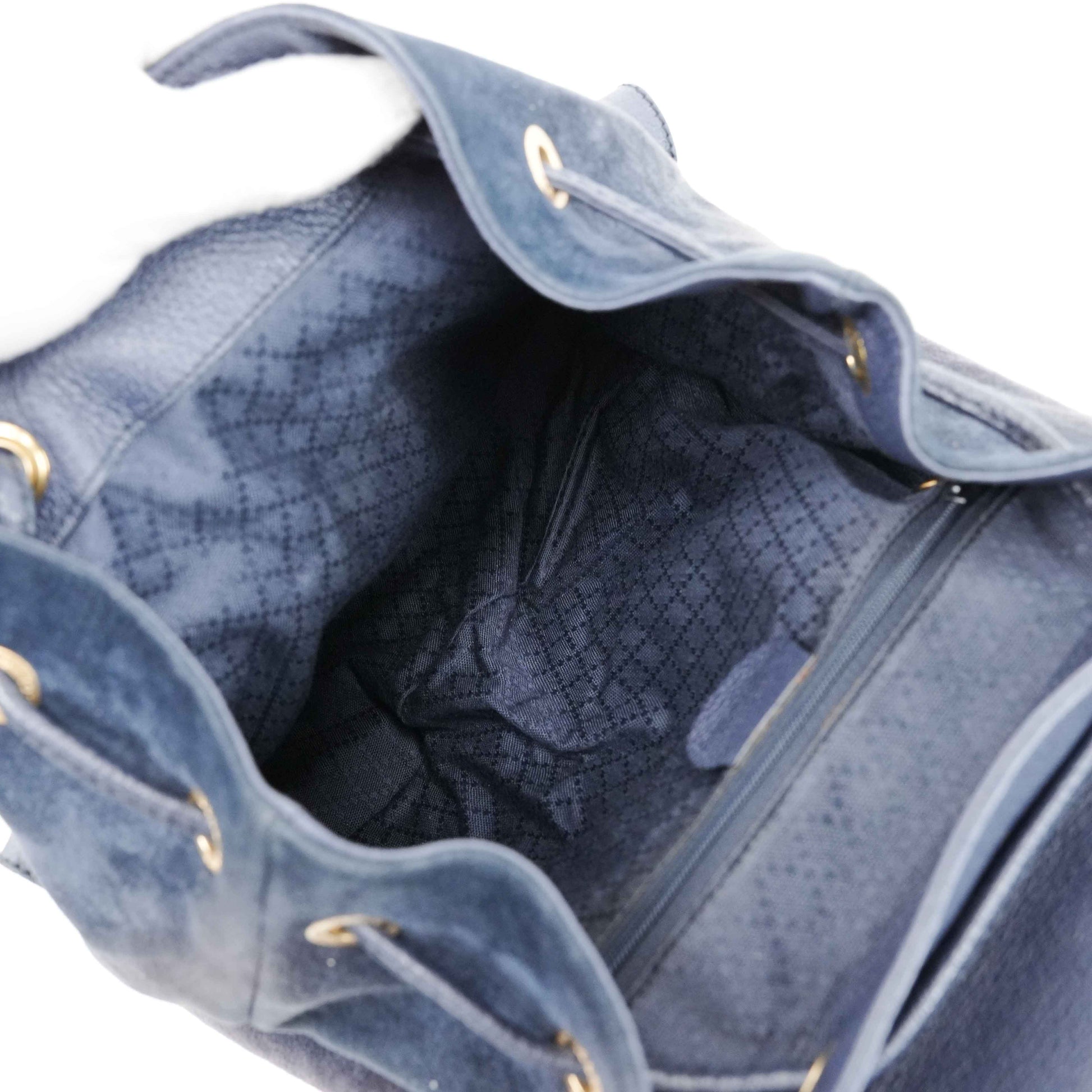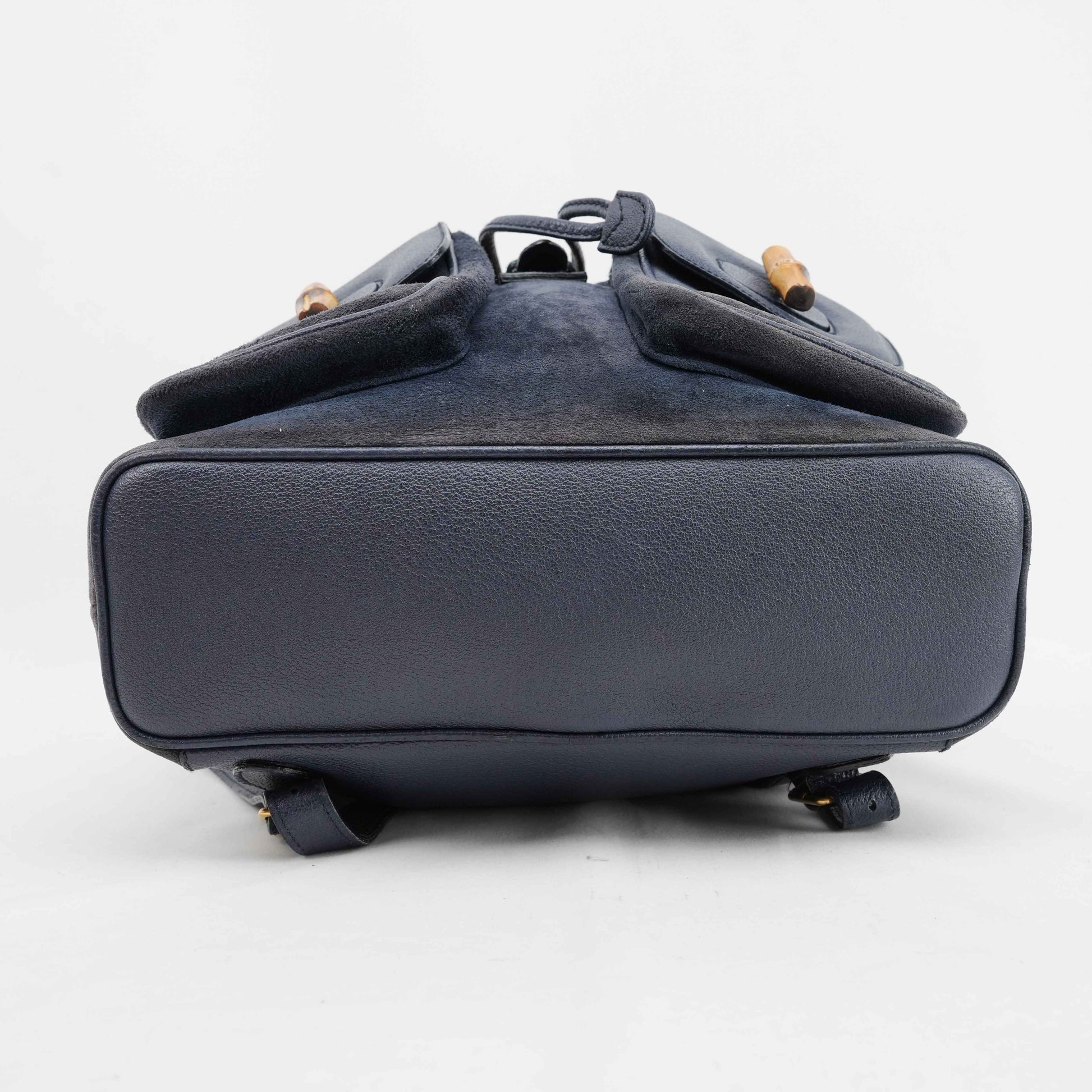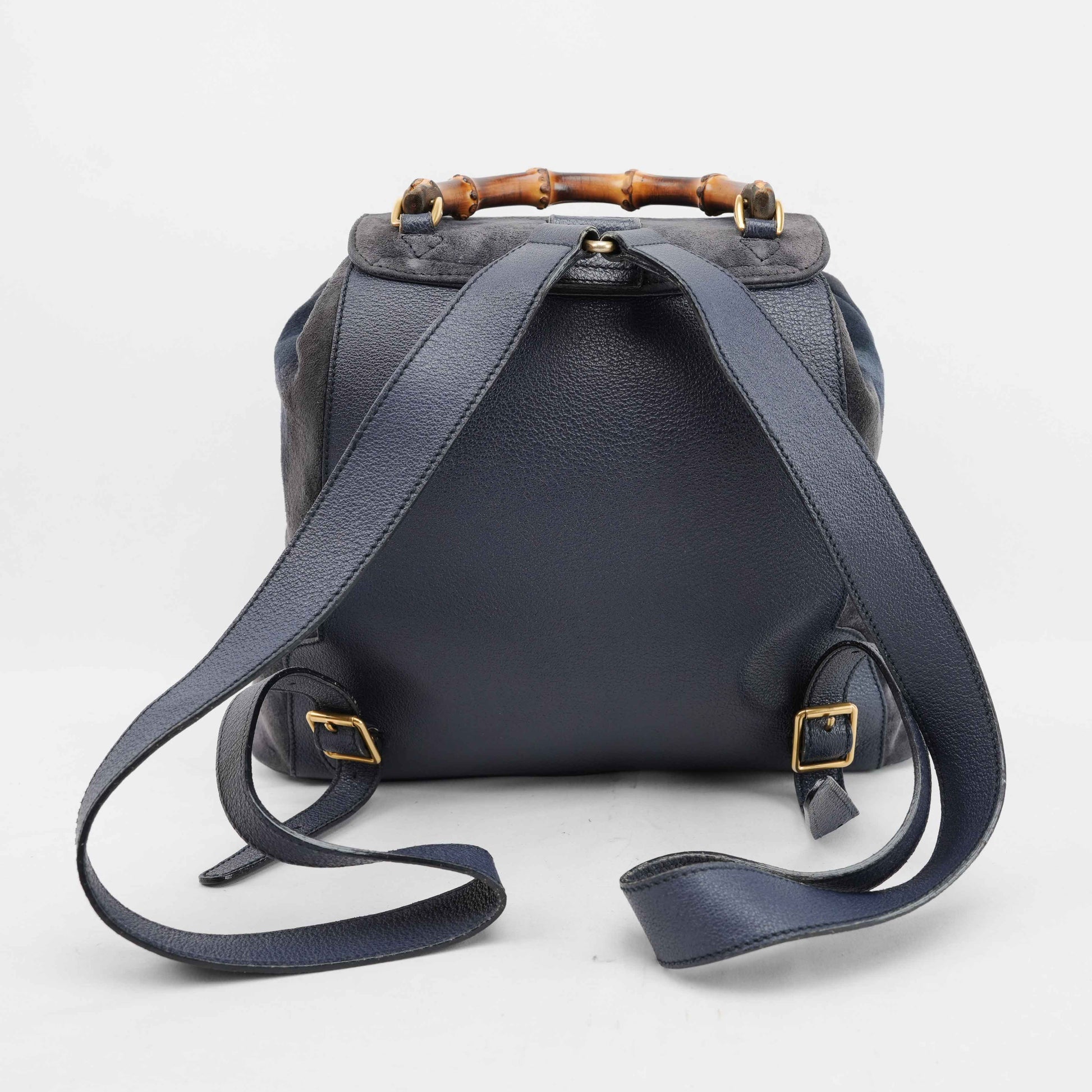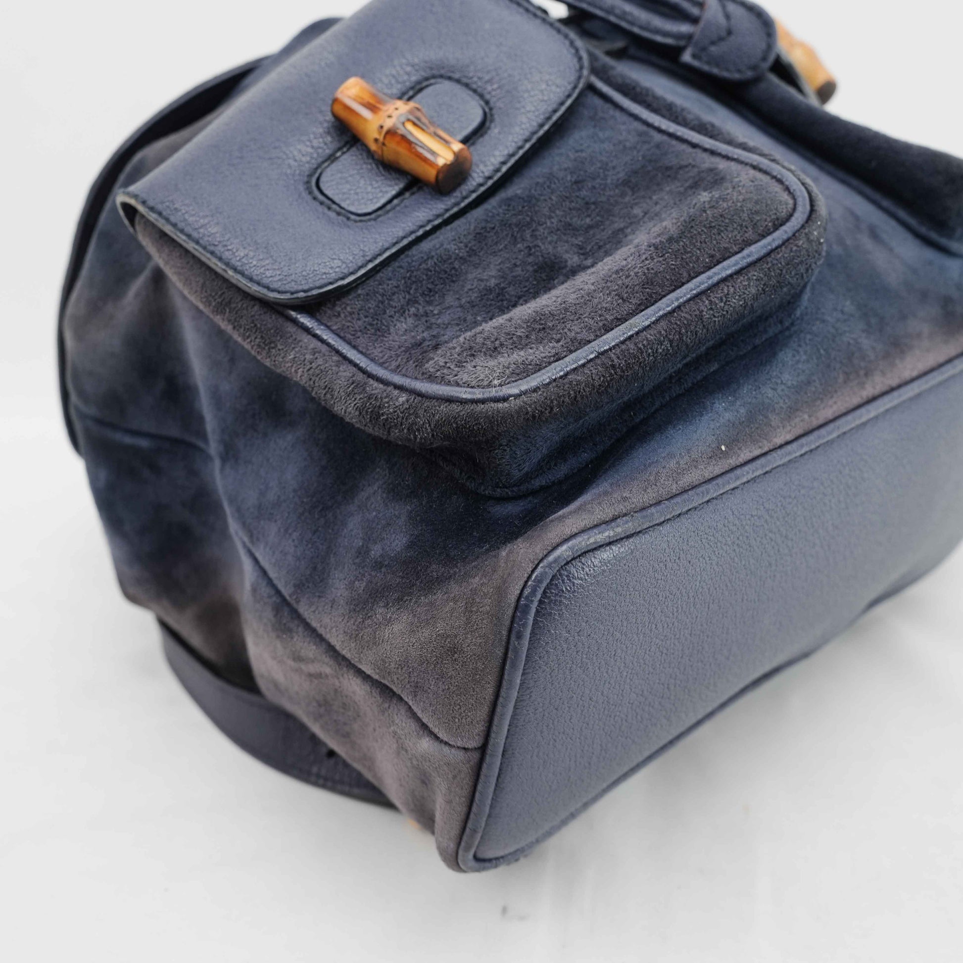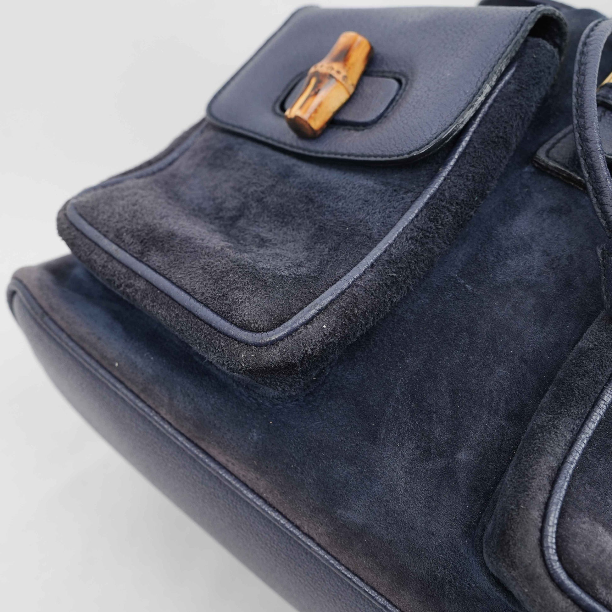 Gucci Vintage Bamboo/Leather & Suede Backpack in Navy Blue