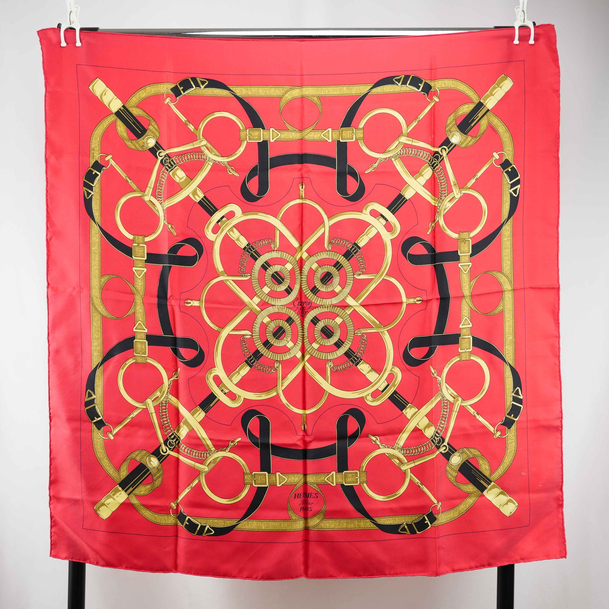 Elevate your accessory collection with this timeless Hermès Éperon d’Or scarf, a classic design by Henri d’Origny introduced in 1974. Crafted from 100% silk and expertly made in France, this carré showcases a striking equestrian-inspired motif featuring golden bits, stirrups, and bridles set against a rich red background.