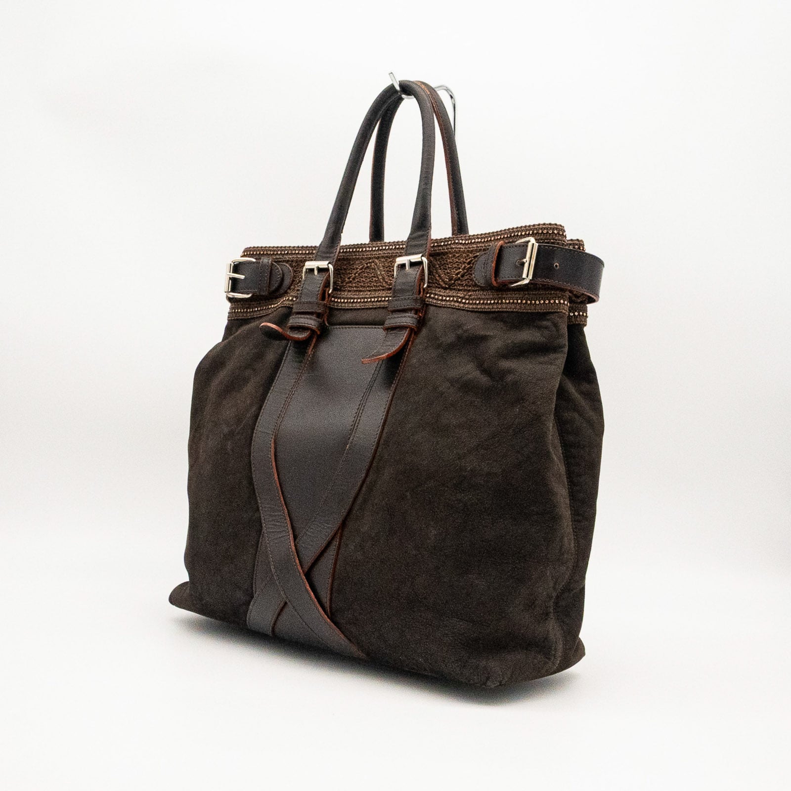Condition notes (as pictured): Good pre-owned condition with light natural patina to the suede that enhances its character. No rips, stains, or odor. Leather remains supple, hardware bright.