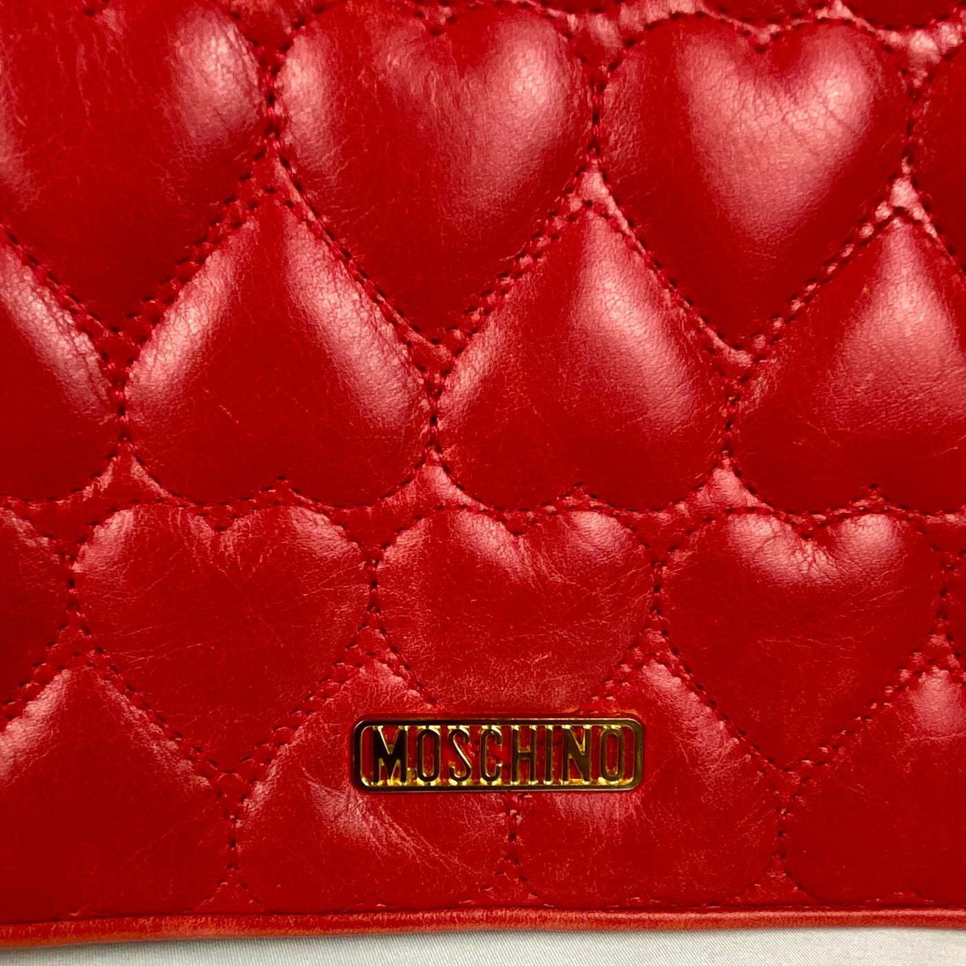 Moschino Heart Quilted Red Leather Chain Shoulder Bag