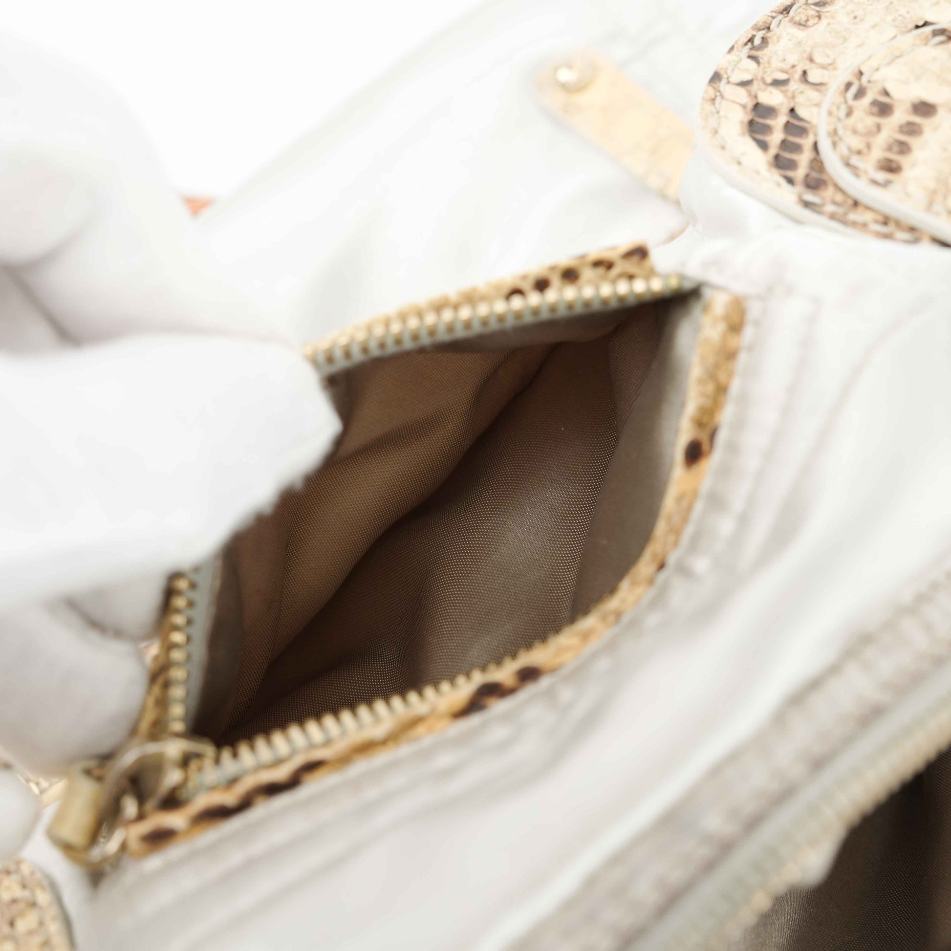 Tod’s White Satin & Python-Trimmed Handbag – Made in Italy