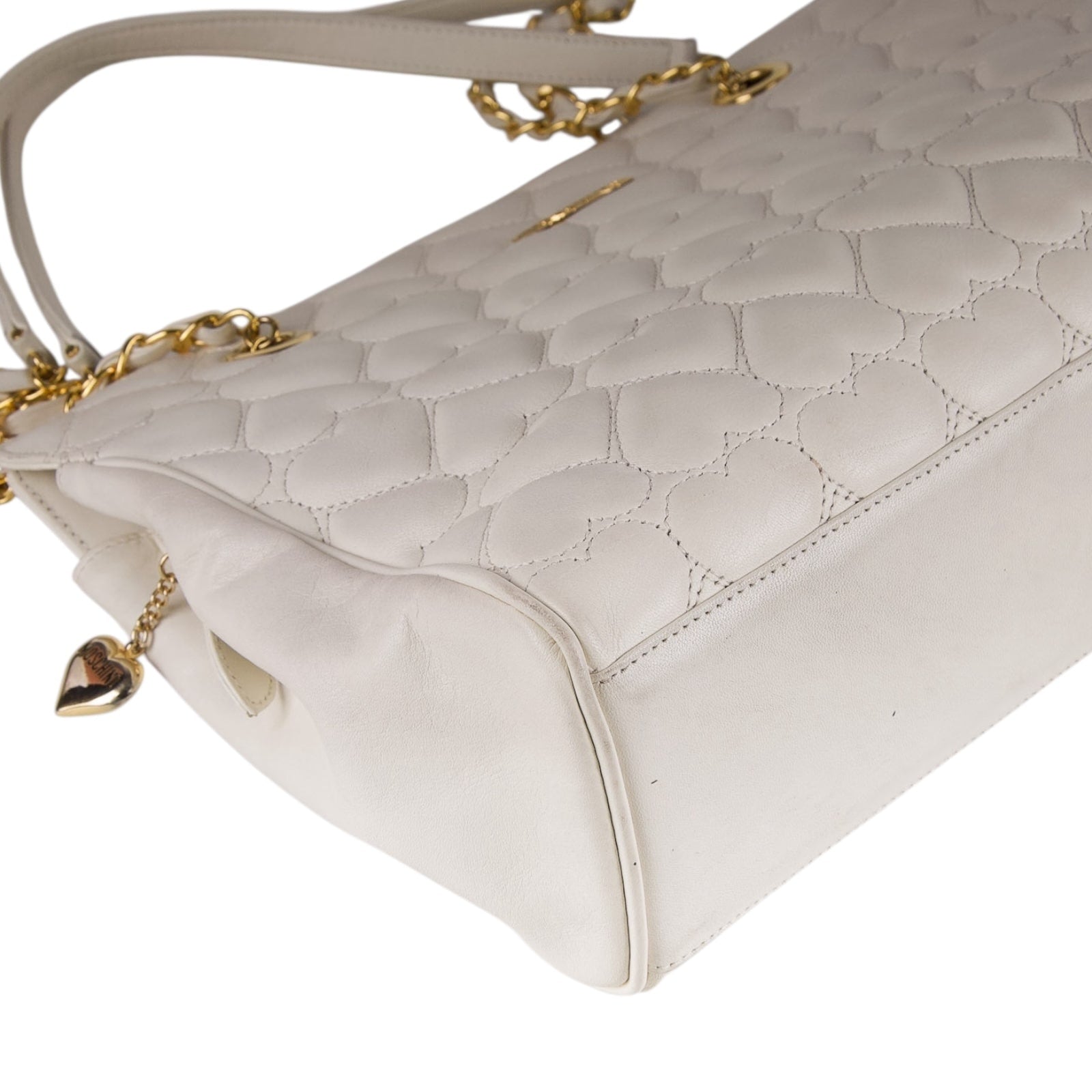 Vintage Moschino heart shape quilted calfskin Gold chain purse